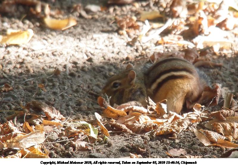 Picture #3: Chipmunk 800x556, 119,740 bytes (117K), (html file) Copyright, Michael Meissner 2010, All rights reserved Olympus E-P2 camera with Olympus-m43 14-150mm f/4.0-5.6 lens f/5.6, ISO 500, 1/200 sec, 150.0mm, auto mode, vivid color, SHQ, custom wb #1 (5400K), matrix metering, auto + manual focus, IS1 (All Direction Shake IS), noise reduction auto 35mm equivalent focal length 301.0mm Programs used: gimp, neatimage Taken by Michael Meissner on September 05, 2010 15:46:36 Last modified on February 22, 2011 at 08:09 |