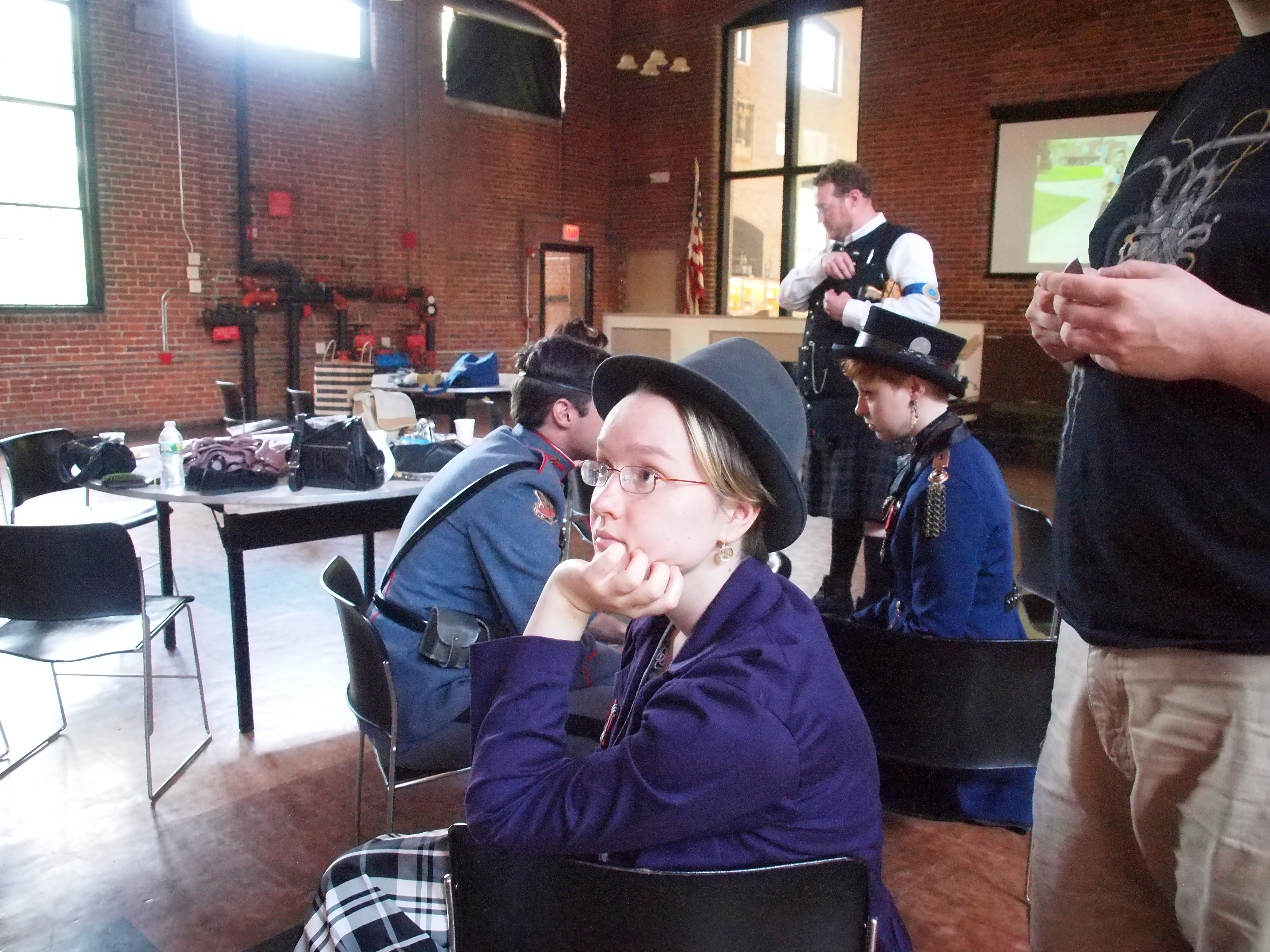 Picture #9: Steampunkers #3 Small: 1000x773, 154,176 bytes (151K), (html file) Large: 4000x3000, 7,892,126 bytes (7.5M), (html file) Copyright, Michael Meissner 2011, All rights reserved Olympus E-P2 camera with Olympus-m43 14-150mm f/4.0-5.6 lens f/4.0, ISO 3200, 1/60 sec, 14.0mm, auto mode, vivid color, matrix metering, auto + manual focus, IS1 (All Direction Shake IS) 35mm equivalent focal length 28.0mm Programs used: raw therapee Taken by Michael Meissner on May 29, 2011 14:43:12 Last modified on June 21, 2011 at 06:28 |