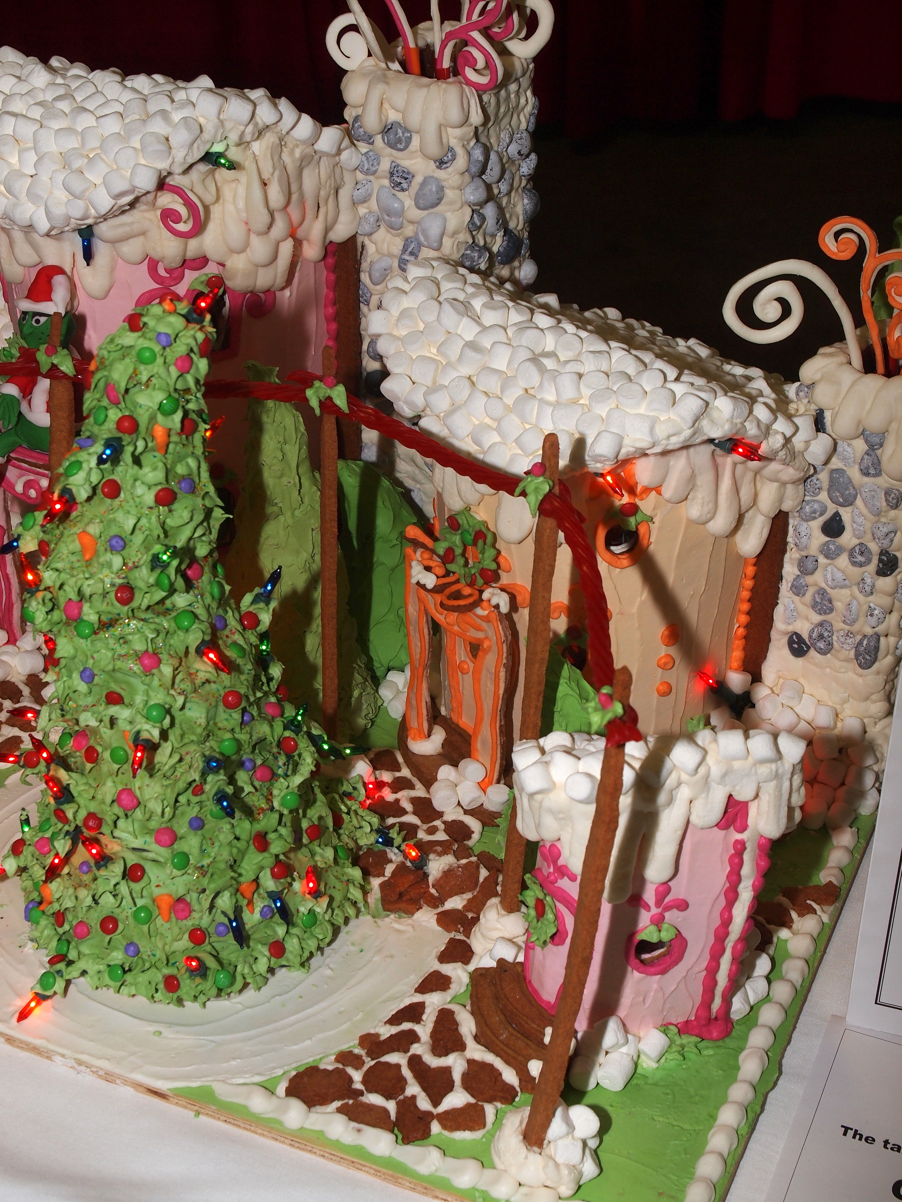 Picture #13: Grinch gingerbread house #2 Small: 1000x773, 182,791 bytes (179K), (html file) Large: 4000x3000, 4,092,680 bytes (3.9M), (html file) Copyright, Michael Meissner 2011, All rights reserved Olympus E-5 camera with Olympus 14-54mm f/2.8-3.5 lens f/8.0, ISO 200, FL-36 flash, 1/60 sec, 27.0mm, aperture priority, vivid color, matrix metering, IS1 (All Direction Shake IS) 35mm equivalent focal length 54.0mm Extra equipment used: Olympus FL-36 flash Programs used: raw therapee Taken by Michael Meissner on November 07, 2011 15:25:53 Last modified on November 21, 2011 at 09:01 |