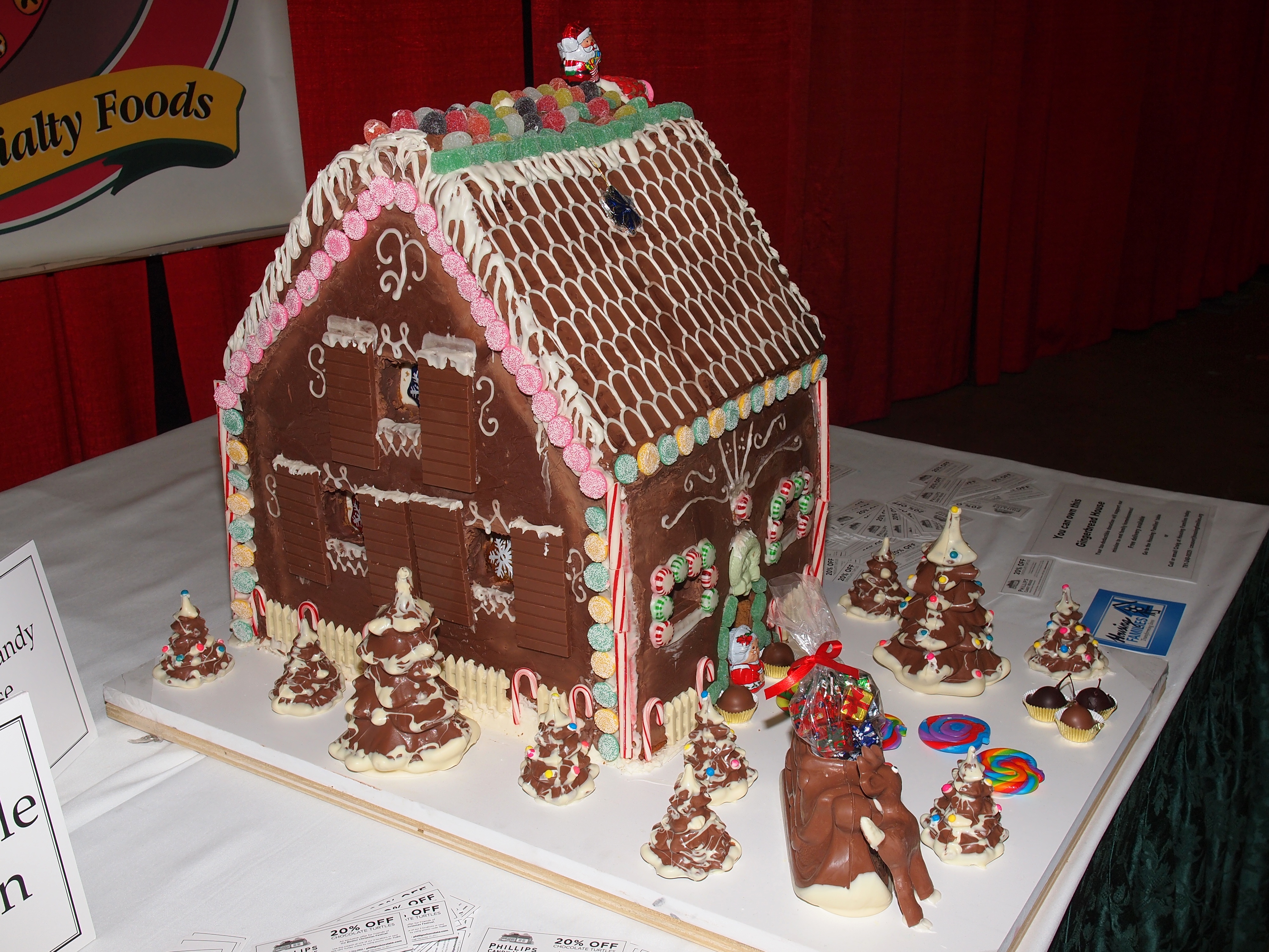 Picture #31: Gingerbread house by Ginger Betty's Bakery #2 Small: 1000x773, 186,618 bytes (183K), (html file) Large: 4000x3000, 4,080,529 bytes (3.9M), (html file) Copyright, Michael Meissner 2011, All rights reserved Olympus E-5 camera with Olympus 14-54mm f/2.8-3.5 lens f/8.0, ISO 200, FL-36 flash, 1/60 sec, 20.0mm, aperture priority, vivid color, matrix metering, IS1 (All Direction Shake IS) 35mm equivalent focal length 40.0mm Extra equipment used: Olympus FL-36 flash Programs used: raw therapee Taken by Michael Meissner on November 07, 2011 15:30:54 Last modified on November 21, 2011 at 09:14 |