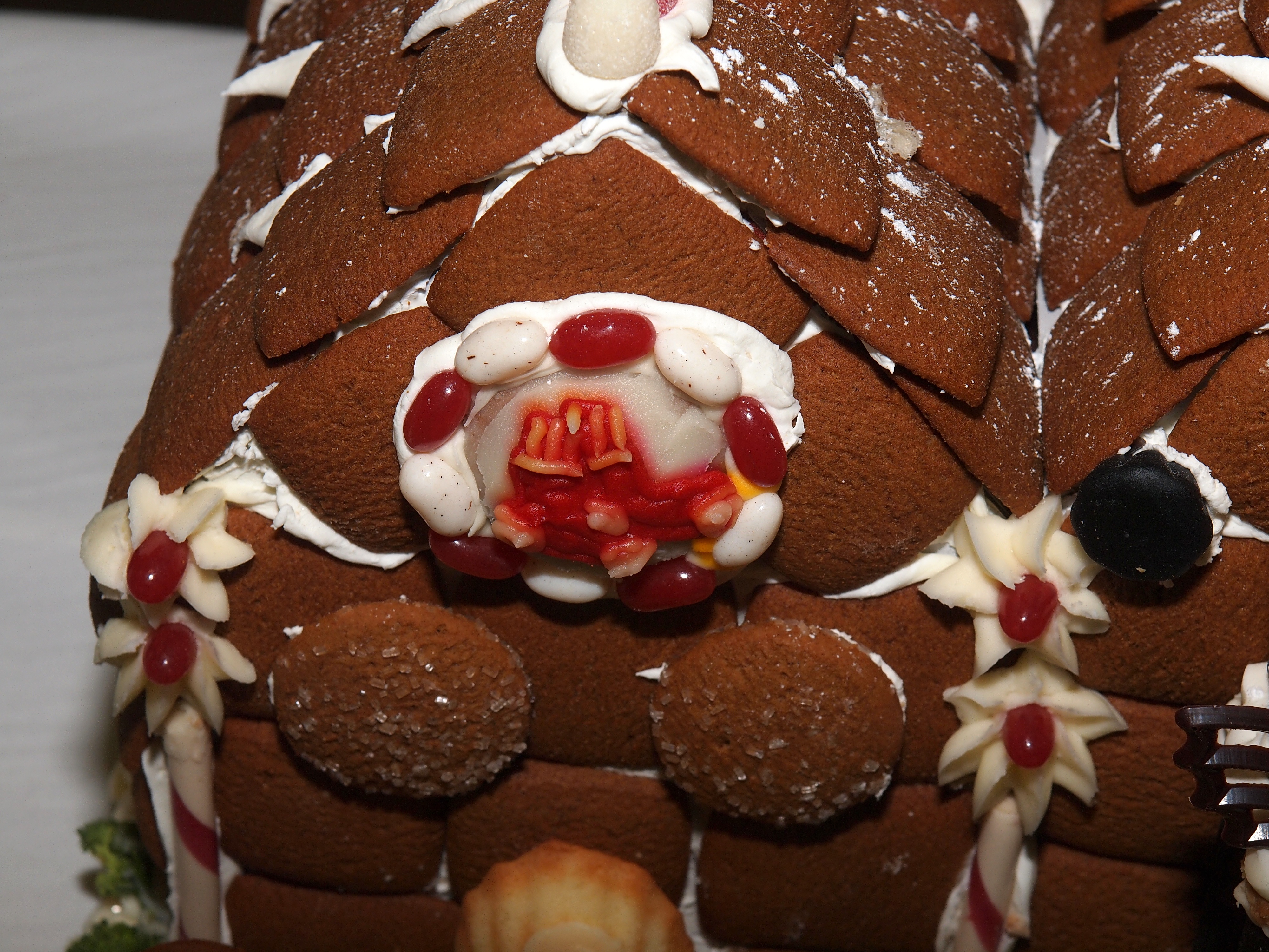 Picture #4: Gingerbread christmas tree by Ginger Betty's Bakery Small: 750x1023, 182,721 bytes (179K), (html file) Large: 3000x4000, 4,056,180 bytes (3.9M), (html file) Copyright, Michael Meissner 2011, All rights reserved Olympus E-5 camera with Olympus 14-54mm f/2.8-3.5 lens f/8.0, ISO 200, FL-36 flash, 1/80 sec, 41.0mm, aperture priority, vivid color, matrix metering, IS1 (All Direction Shake IS) 35mm equivalent focal length 82.0mm Extra equipment used: Olympus FL-36 flash Programs used: raw therapee Taken by Michael Meissner on November 07, 2011 15:22:46 Last modified on November 21, 2011 at 08:53 |