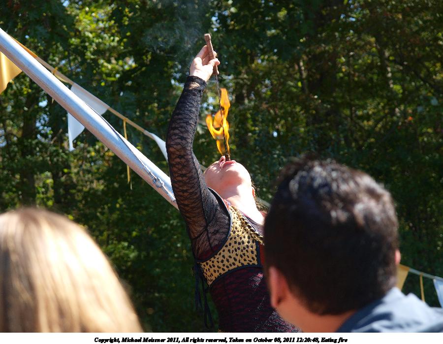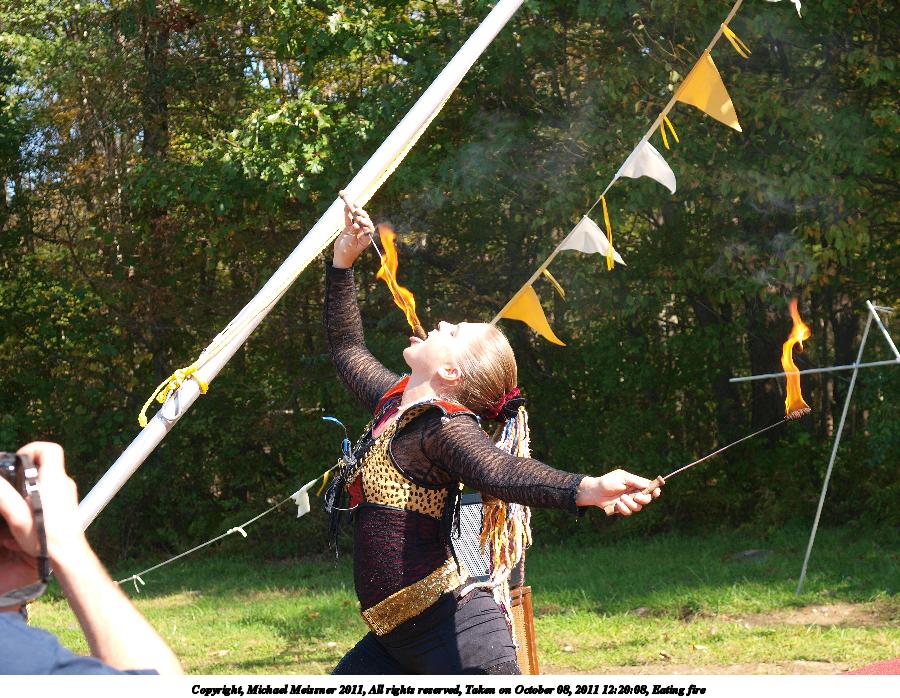 Picture #16: Eating fire #3 Small: 900x698, 166,584 bytes (163K), (html file) Large: 3600x2700, 3,533,856 bytes (3.4M), (html file) Copyright, Michael Meissner 2011, All rights reserved Olympus E-3 camera with Olympus 14-54mm f/2.8-3.5 lens f/4.5, ISO 100, 1/160 sec, 37.0mm, auto mode, vivid color, SHQ, matrix metering, continous focus, IS1 (All Direction Shake IS), noise filter low 35mm equivalent focal length 74.0mm Programs used: raw therapee Taken by Michael Meissner on October 08, 2011 12:20:08 Last modified on January 29, 2012 at 16:47 |
