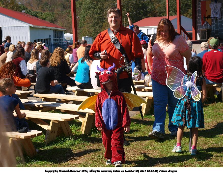 Picture #3: Patron dragon Small: 900x698, 183,558 bytes (180K), (html file) Large: 3600x2700, 3,696,400 bytes (3.5M), (html file) Copyright, Michael Meissner 2011, All rights reserved Olympus E-3 camera with Olympus 14-54mm f/2.8-3.5 lens f/6.3, ISO 100, 1/320 sec, 38.0mm, auto mode, vivid color, SHQ, matrix metering, continous focus, IS1 (All Direction Shake IS), noise filter low 35mm equivalent focal length 76.0mm Programs used: raw therapee Taken by Michael Meissner on October 08, 2011 12:34:30 Last modified on January 29, 2012 at 16:52 |