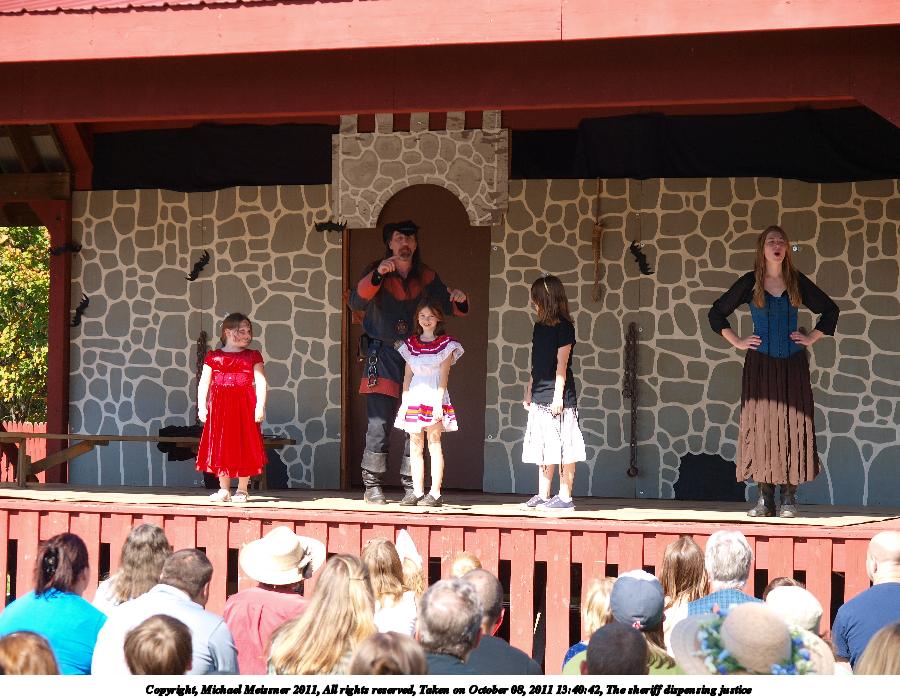 Picture #7: The sheriff dispensing justice Small: 900x698, 130,219 bytes (128K), (html file) Large: 3600x2700, 2,690,494 bytes (2.6M), (html file) Copyright, Michael Meissner 2011, All rights reserved Olympus E-3 camera with Olympus 14-54mm f/2.8-3.5 lens f/4.0, ISO 100, 1/250 sec, 52.0mm, auto mode, vivid color, SHQ, matrix metering, continous focus, IS1 (All Direction Shake IS), noise filter low 35mm equivalent focal length 104.0mm Programs used: raw therapee Taken by Michael Meissner on October 08, 2011 13:40:42 Last modified on January 29, 2012 at 18:05 |