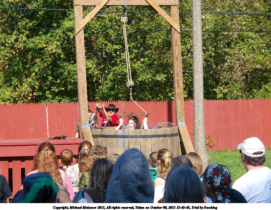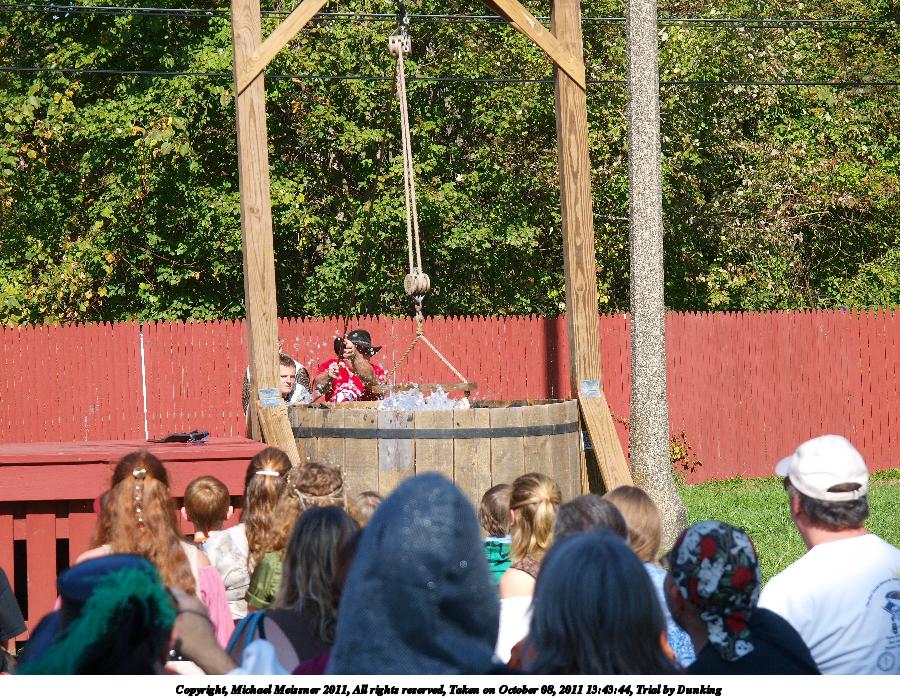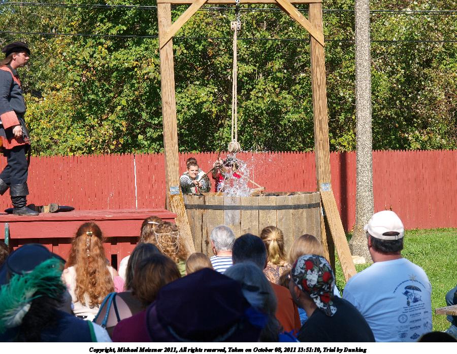 Picture #11: Trial by Dunking #9 Small: 900x698, 221,525 bytes (217K), (html file) Large: 3600x2700, 4,624,135 bytes (4.4M), (html file) Copyright, Michael Meissner 2011, All rights reserved Olympus E-3 camera with Olympus 14-54mm f/2.8-3.5 lens f/5.0, ISO 100, 1/320 sec, 52.0mm, auto mode, vivid color, SHQ, matrix metering, continous focus, IS1 (All Direction Shake IS), noise filter low 35mm equivalent focal length 104.0mm Programs used: raw therapee Taken by Michael Meissner on October 08, 2011 13:43:44 Last modified on January 29, 2012 at 18:10 |