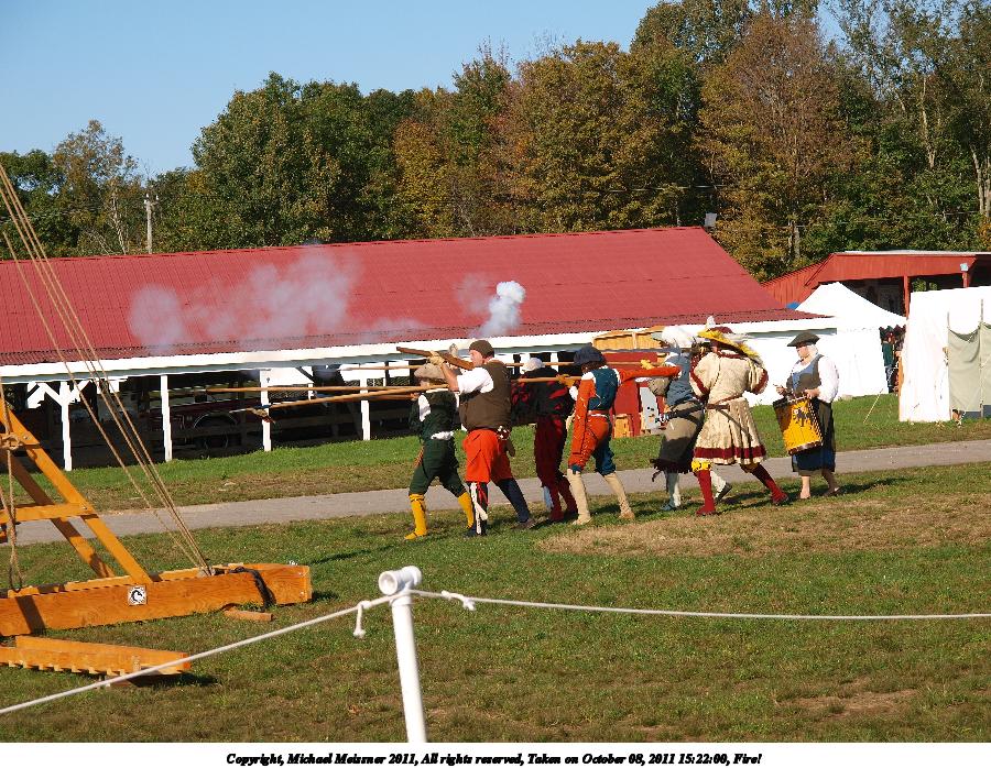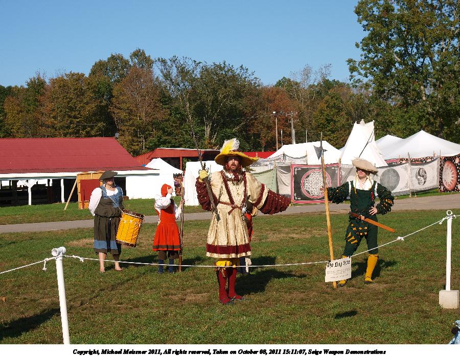Picture #1: Seige Weapon Demonstrations Small: 900x698, 195,871 bytes (192K), (html file) Large: 3600x2700, 4,363,687 bytes (4.2M), (html file) Copyright, Michael Meissner 2011, All rights reserved Olympus E-3 camera with Olympus 14-54mm f/2.8-3.5 lens f/5.6, ISO 100, 1/640 sec, 35.0mm, auto mode, vivid color, SHQ, matrix metering, continous focus, IS1 (All Direction Shake IS), noise filter low 35mm equivalent focal length 70.0mm Programs used: raw therapee Taken by Michael Meissner on October 08, 2011 15:11:07 Last modified on January 29, 2012 at 18:44 |
