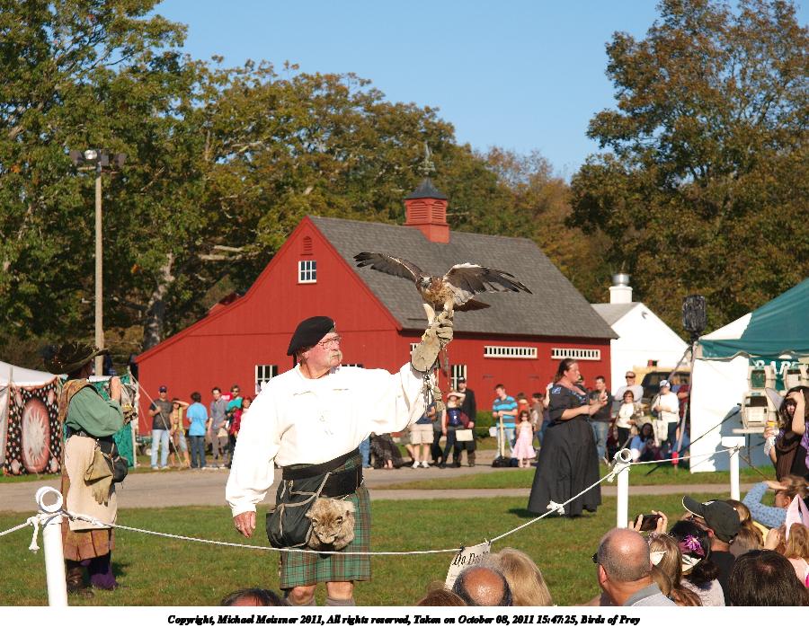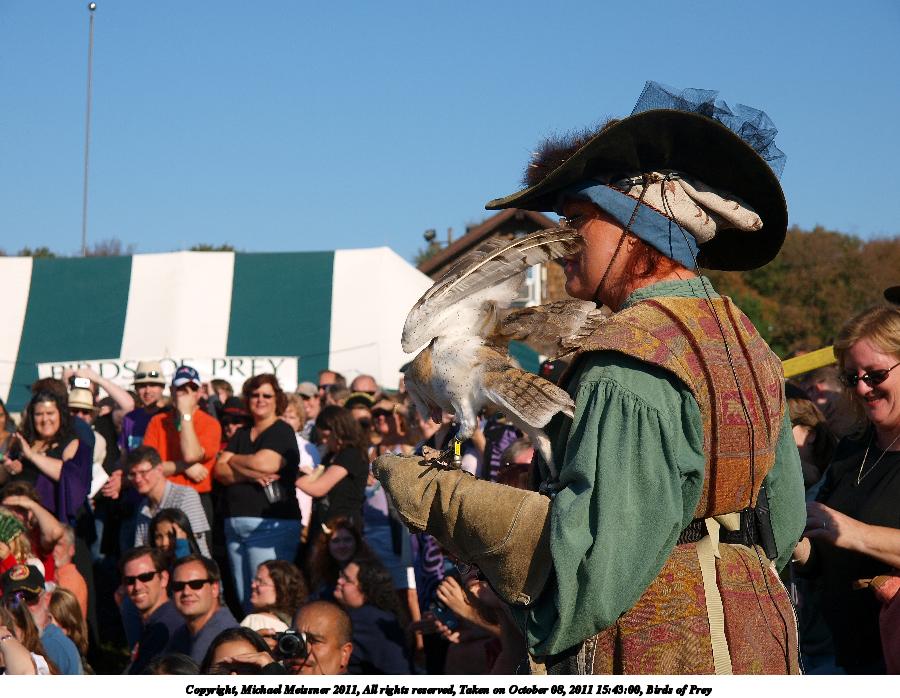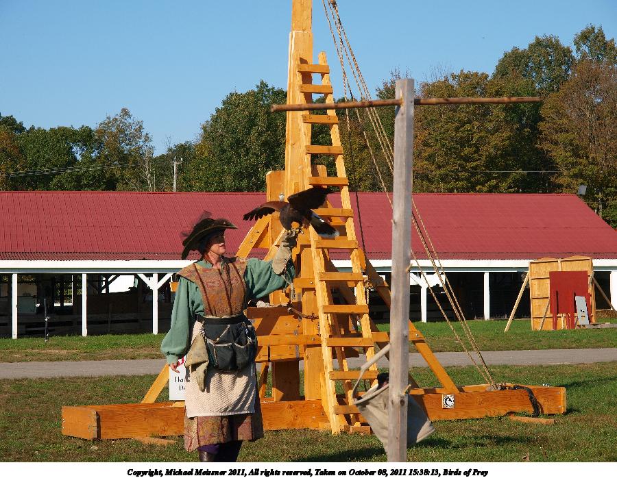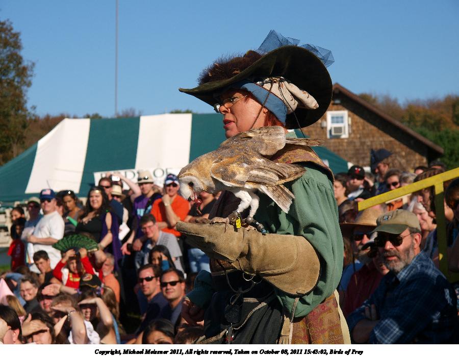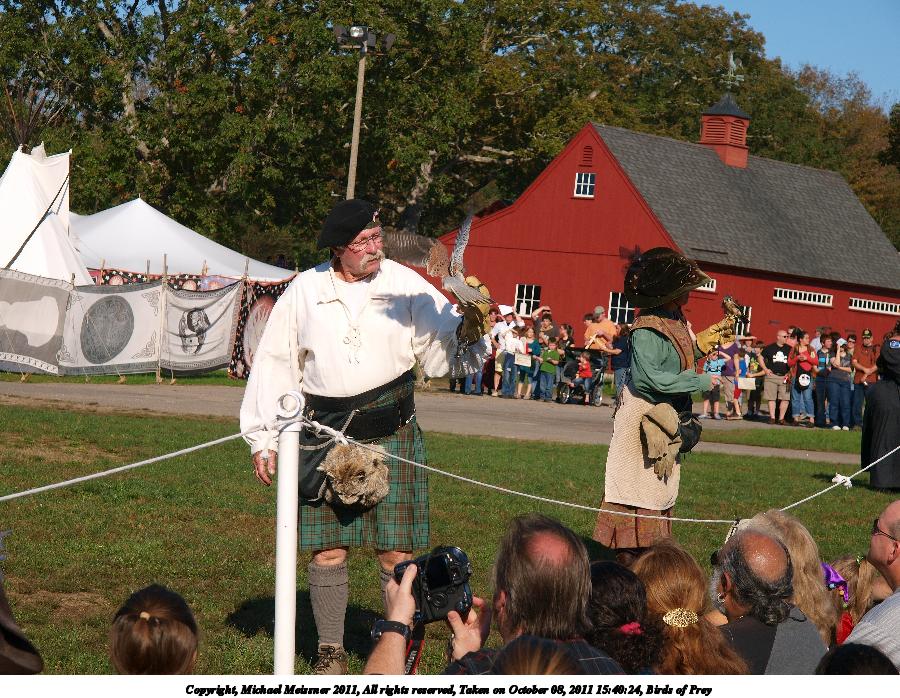 Picture #5: Birds of Prey Small: 900x698, 213,442 bytes (209K), (html file) Large: 3600x2700, 4,757,618 bytes (4.5M), (html file) Copyright, Michael Meissner 2011, All rights reserved Olympus E-3 camera with Olympus 14-54mm f/2.8-3.5 lens f/7.1, ISO 100, 1/400 sec, 54.0mm, auto mode, vivid color, SHQ, matrix metering, continous focus, IS1 (All Direction Shake IS), noise filter low 35mm equivalent focal length 108.0mm Programs used: raw therapee Taken by Michael Meissner on October 08, 2011 15:52:00 Last modified on January 29, 2012 at 18:52 |