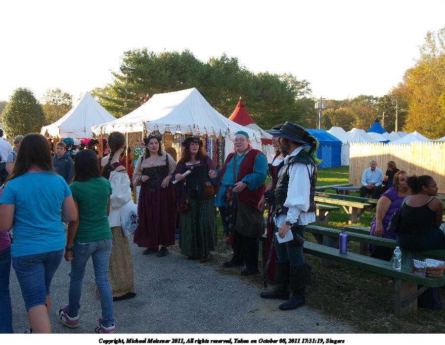 Picture #8: Singers Small: 900x698, 130,497 bytes (128K), (html file) Large: 3600x2700, 2,842,822 bytes (2.7M), (html file) Copyright, Michael Meissner 2011, All rights reserved Olympus E-3 camera with Olympus 14-54mm f/2.8-3.5 lens f/3.5, ISO 100, 1/125 sec, 19.0mm, auto mode, vivid color, SHQ, matrix metering, continous focus, IS1 (All Direction Shake IS), noise filter low 35mm equivalent focal length 38.0mm Programs used: raw therapee Taken by Michael Meissner on October 08, 2011 17:31:19 Last modified on January 29, 2012 at 18:56 |