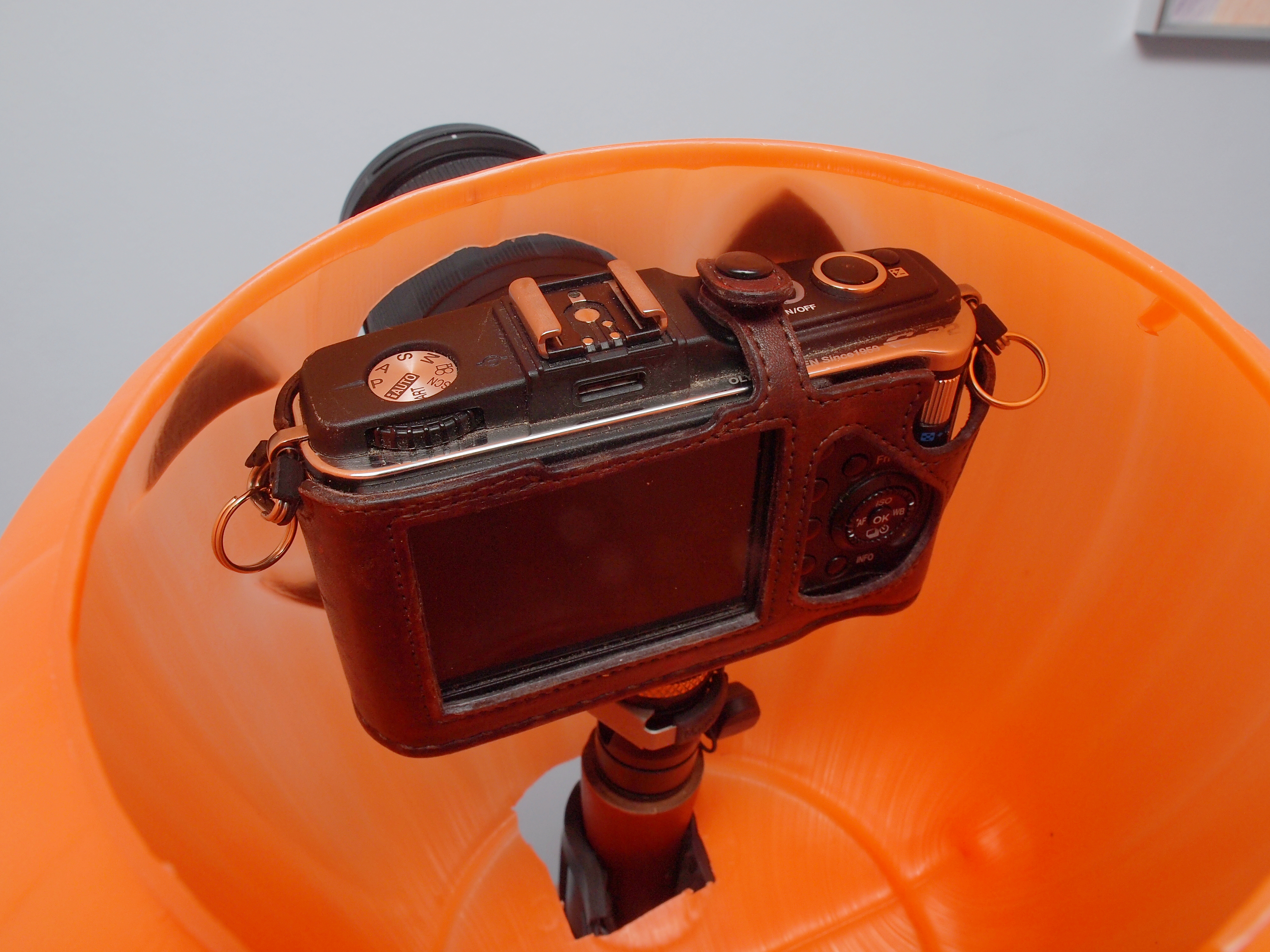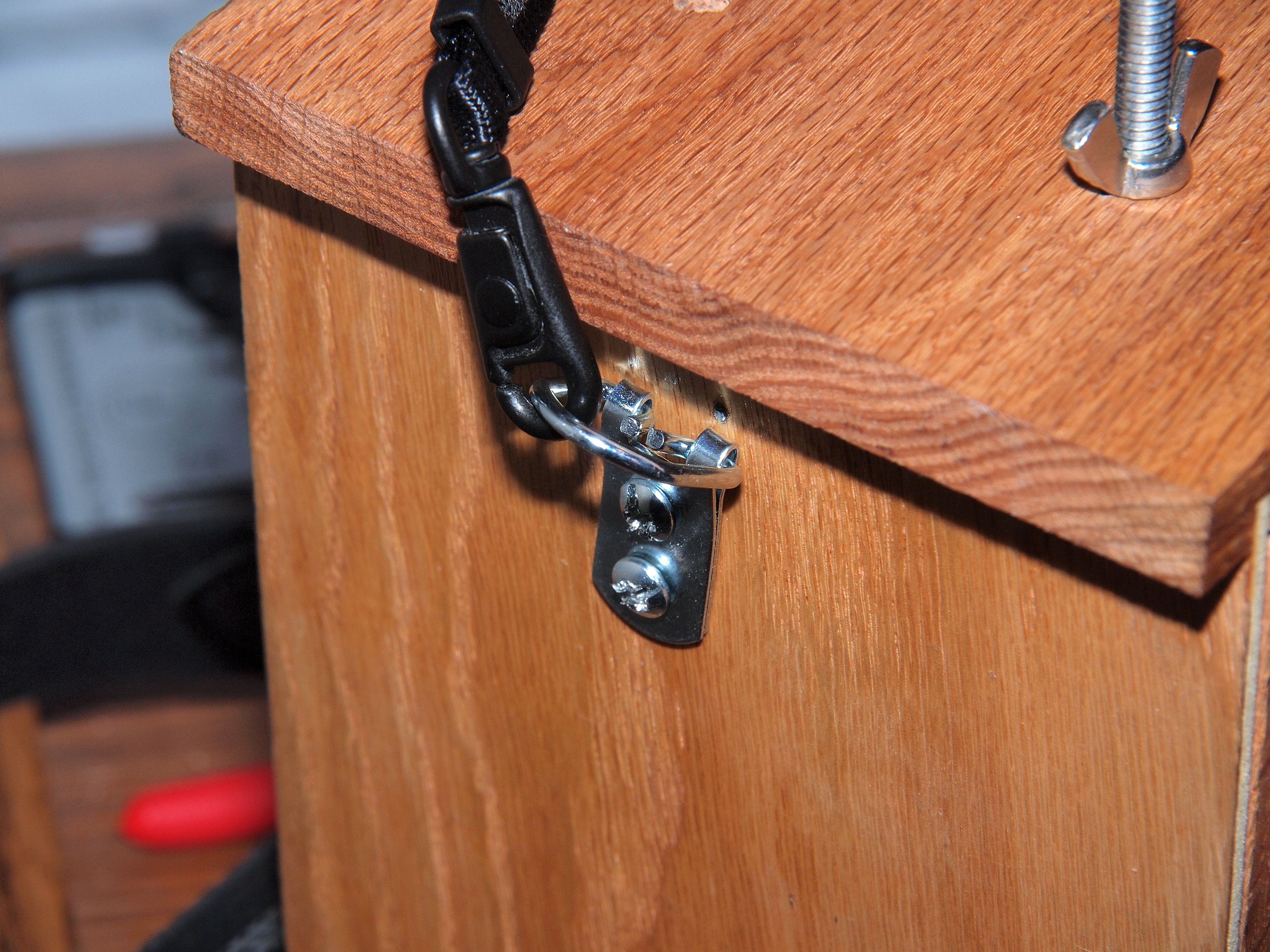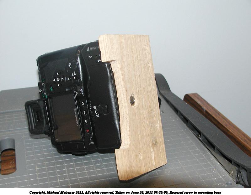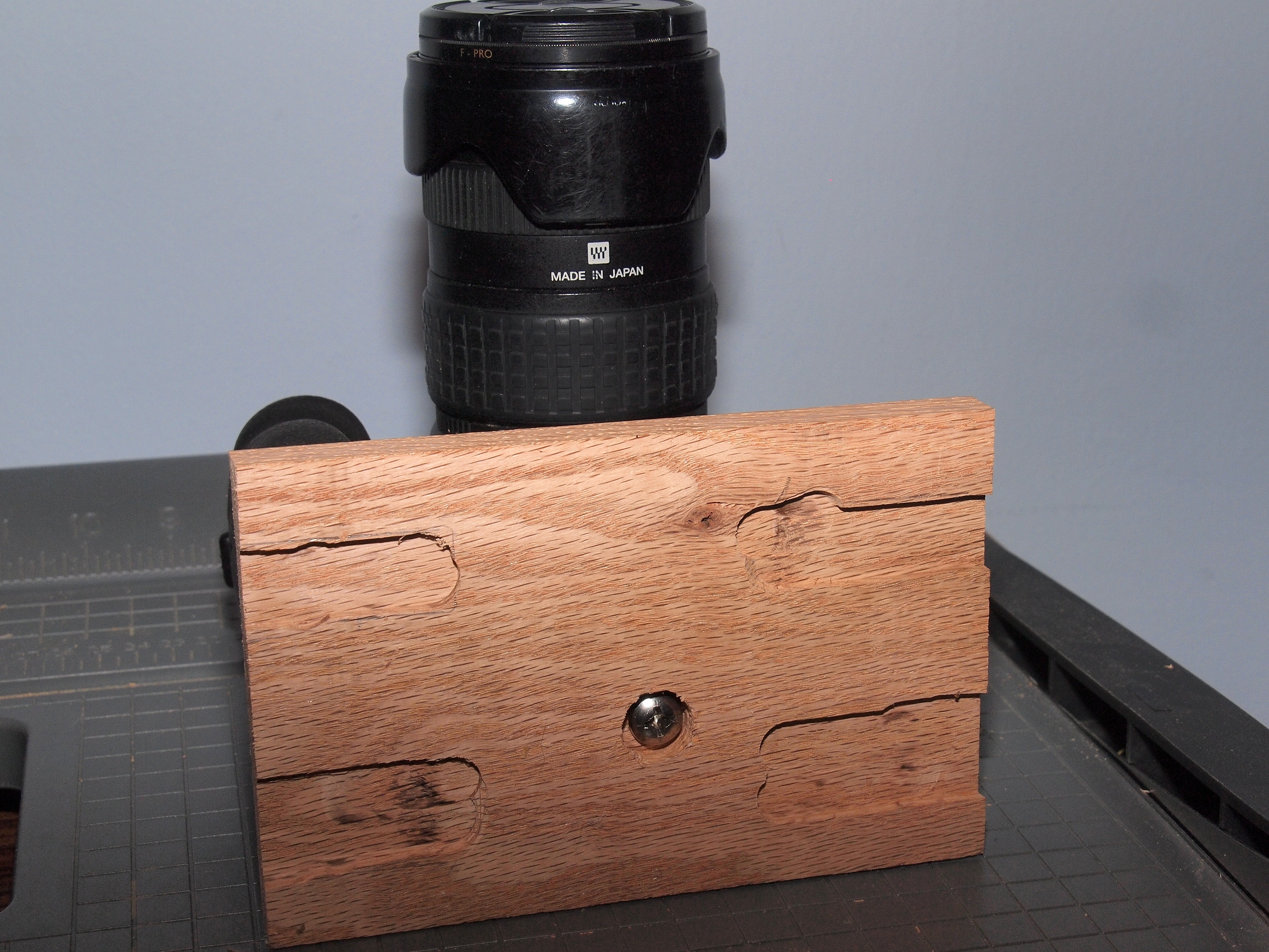 In the previous generation of the box, I attached the camera via the tripod screw to the box via a screw that went through the box. It usually took several minutes to line up the camera to the screw hole and attach the screw. Usually I would need to tip the box over on its side to line things up properly. This generation features a wooden base that the camera is mounted on that has a recessed screw to attach the camera to the base. This way, I will be able to attach the camera to the base, and just slide it in.