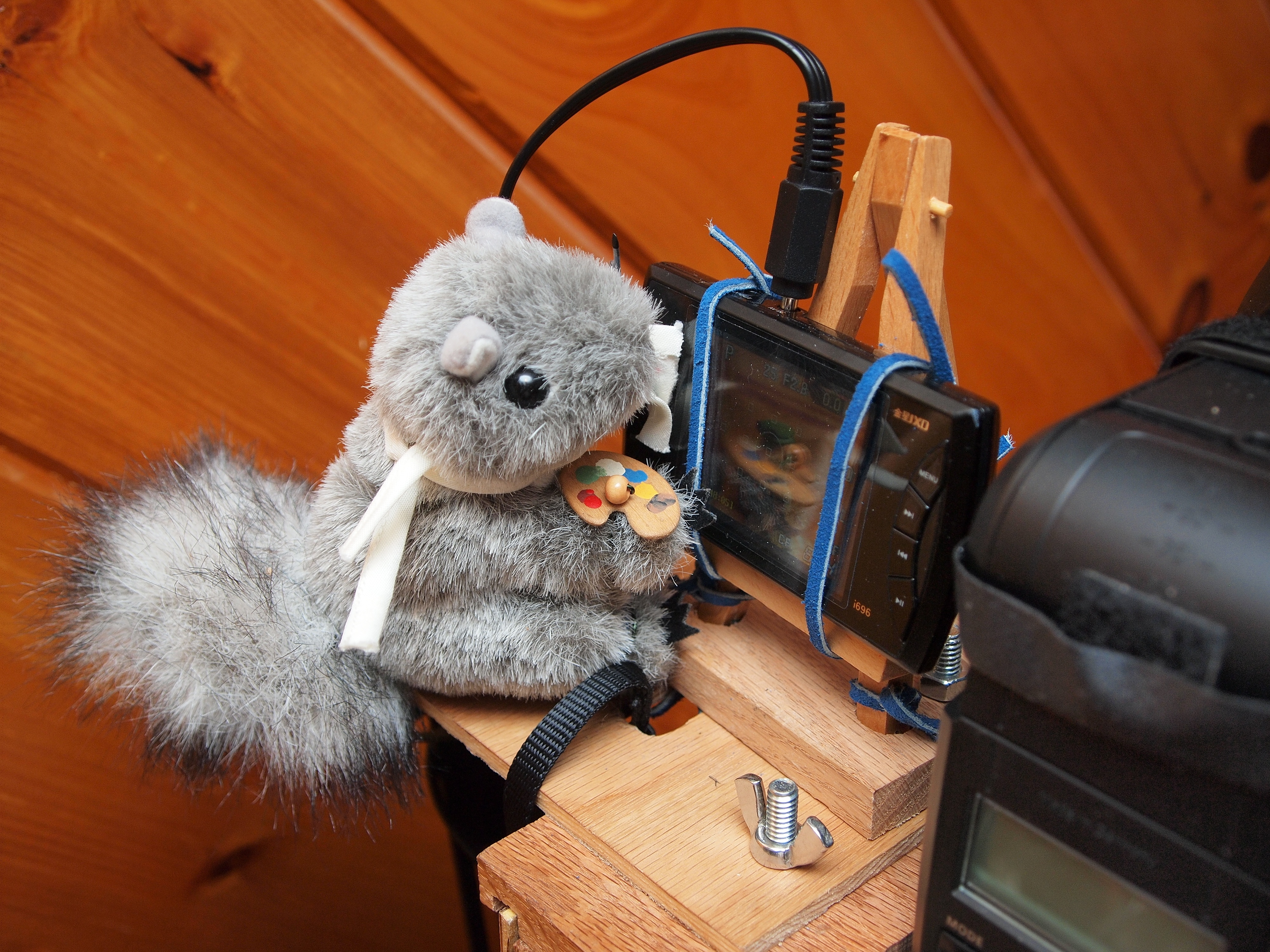 Picture #58: Livinia paitng the live view Small: 1000x773, 154,822 bytes (152K), (html file) Large: 4000x3000, 6,982,456 bytes (6.7M), (html file) Copyright, Michael Meissner 2011, All rights reserved Olympus E-P2 camera with Olympus-m43 14-42mm f/3.5-5.6 lens f/4.1, ISO 200, FL-36 flash (+0.33 flash compensation), 1/60 sec, 20.0mm, auto mode, vivid color, auto gradation, SHQ, matrix metering, IS1 (All Direction Shake IS), noise reduction auto, noise filter low 35mm equivalent focal length 40.0mm Extra equipment used: Olympus FL-36 flash Programs used: rawtherapee Taken by Michael Meissner on September 18, 2011 18:30:58 Last modified on September 18, 2011 at 22:40 One of the aspects of the current setup, is my painter squirrel (Livinia, named after a female court painter to Henry VIII and Elizabeth I), is painting the image from the live view of the camera. I plug the Olympus E-3 video out cable into the video in cable for the JXD i969 portable music player that does video input. This picture is one of my favorites. |