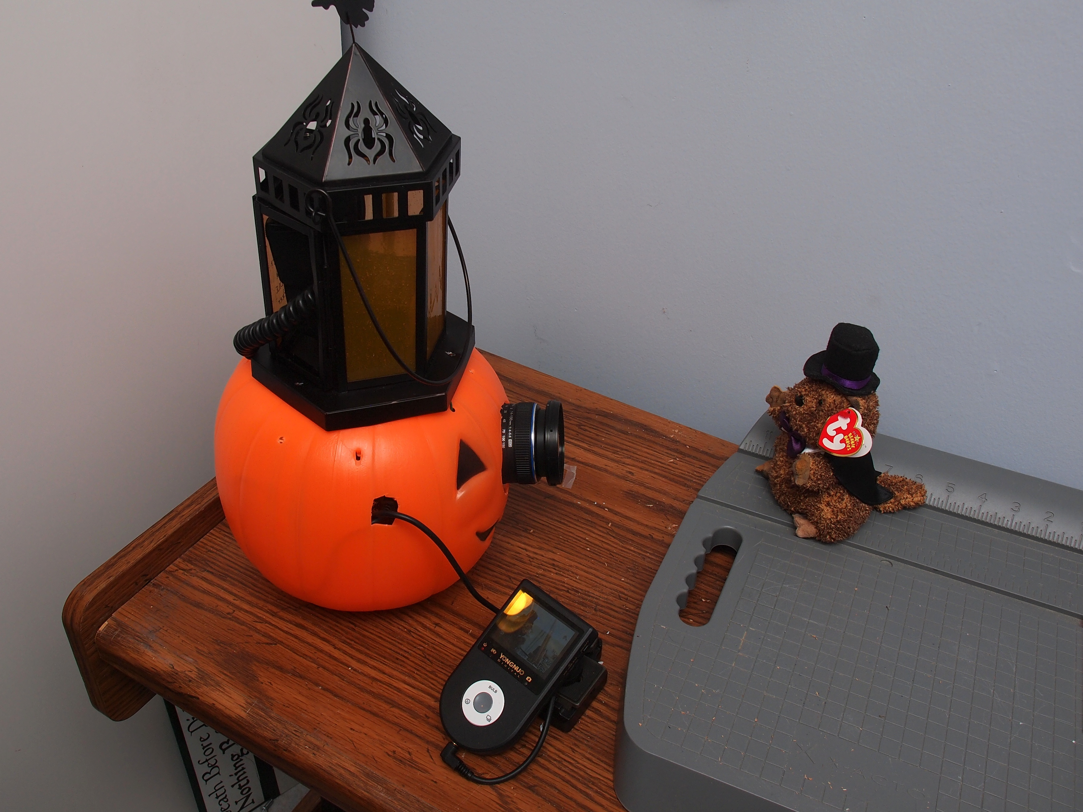 Picture #3: Pumpkin camera with Yongnuo viewer and shutter release #2 Small: 1000x773, 100,309 bytes (98K), (html file) Large: 4000x3000, 2,929,533 bytes (2.8M), (html file) Olympus E-5 camera with Olympus 14-54mm f/2.8-3.5 lens f/8.0, ISO 200, Metz 48 flash, 1/60 sec, 23.0mm, aperture priority, vivid color, matrix metering, IS1 (All Direction Shake IS) 35mm equivalent focal length 46.0mm Extra equipment used: Metz 48 flash Programs used: adjusttime, raw therapee Taken by Michael Meissner on October 27, 2011 10:06:33 Last modified on November 06, 2011 at 18:52 |