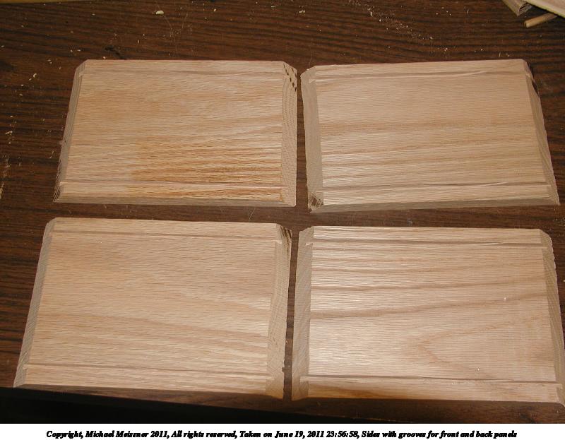 In the previous generation, I added the front and back pieces after the fact. In this generation, I am cutting grooves in the wood as I build it so I can slide in the front and back pieces without having to attach them to the front and back. In particular, my attempts at attaching hinges never seemed to go on straight.