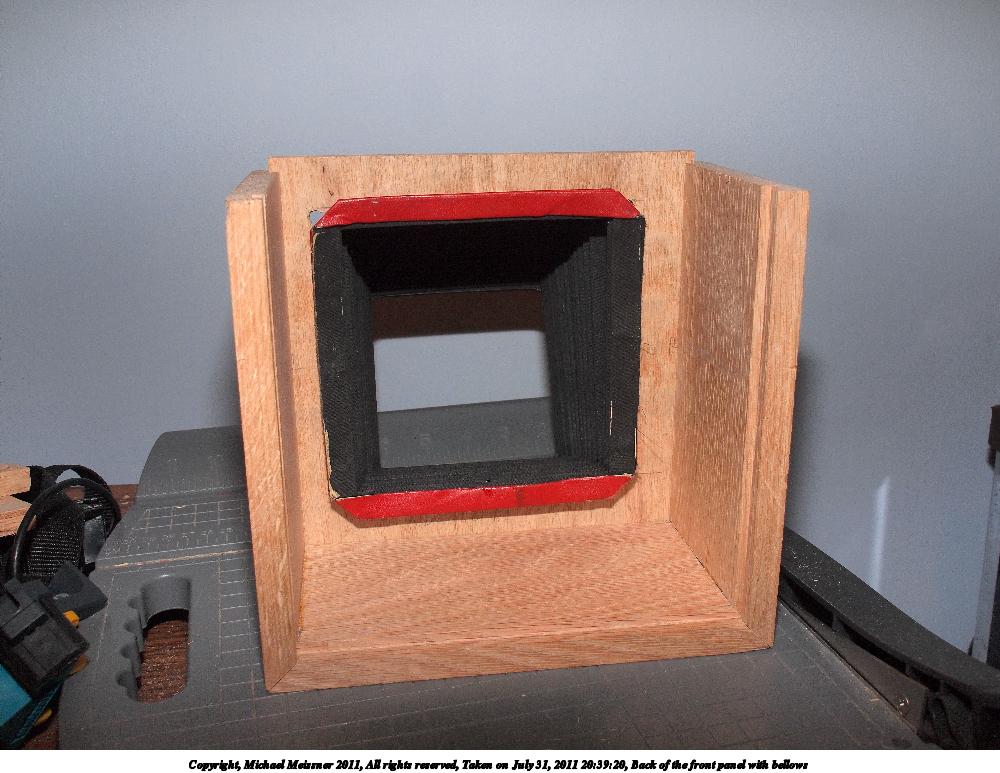 Picture #19: Back of the front panel with bellows Small: 1000x773, 120,492 bytes (118K), (html file) Large: 4000x3000, 4,104,050 bytes (3.9M), (html file) Copyright, Michael Meissner 2011, All rights reserved Olympus E-P2 camera with Olympus-m43 14-150mm f/4.0-5.6 lens f/8.0, ISO 200, FL-36 flash (+0.33 flash compensation), 1/60 sec, 18.0mm, aperture priority, vivid color, auto gradation, SHQ, matrix metering, auto + manual focus, IS1 (All Direction Shake IS) 35mm equivalent focal length 36.0mm Extra equipment used: Olympus FL-36 flash Programs used: raw therapee Taken by Michael Meissner on July 31, 2011 20:39:20 Last modified on July 31, 2011 at 22:45 |