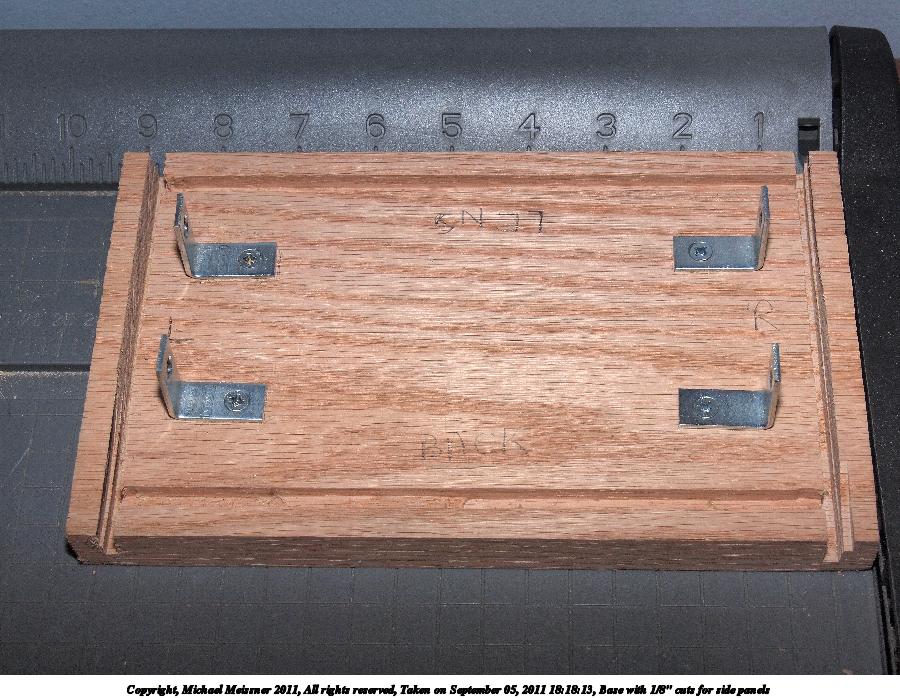Picture #52: Base with 1/8" cuts for side panels Small: 900x698, 147,659 bytes (145K), (html file) Large: 3600x2700, 6,479,681 bytes (6.2M), (html file) Copyright, Michael Meissner 2011, All rights reserved Olympus E-P2 camera with Olympus-m43 14-150mm f/4.0-5.6 lens f/8.0, ISO 200, FL-36 flash (+0.33 flash compensation), 1/60 sec, 31.0mm, aperture priority, vivid color, auto gradation, SHQ, matrix metering, auto + manual focus, IS1 (All Direction Shake IS) 35mm equivalent focal length 62.0mm Extra equipment used: Olympus FL-36 flash Programs used: rawtherapee Taken by Michael Meissner on September 05, 2011 18:18:13 Last modified on September 05, 2011 at 21:22 |