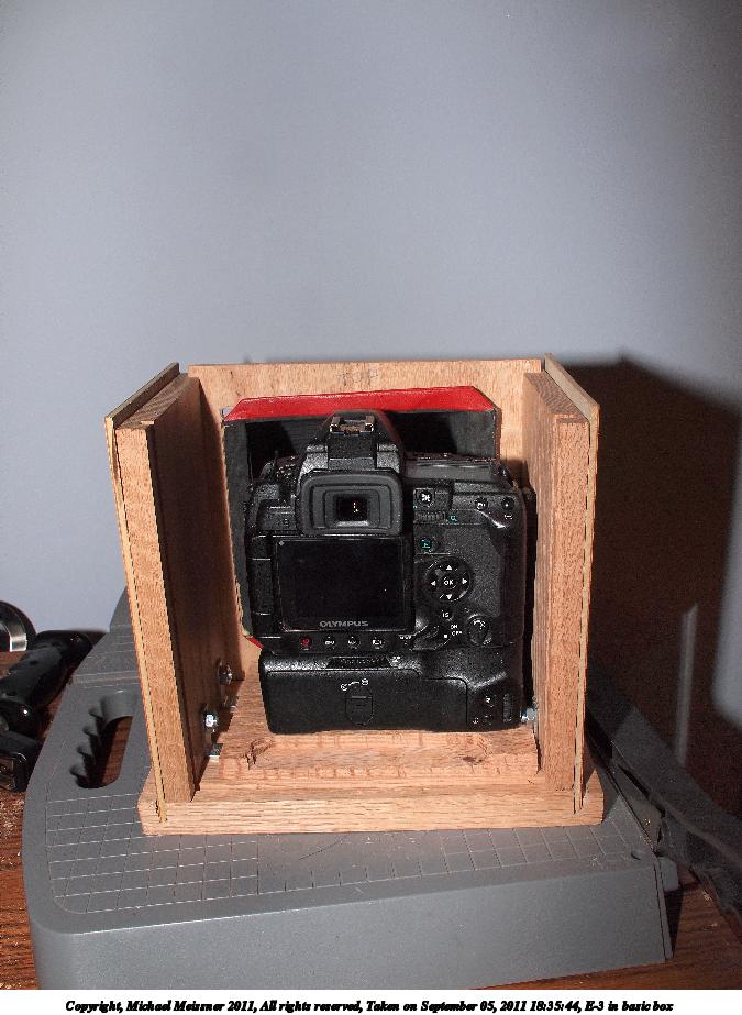 Picture #26: Box with back panel installed Small: 1000x773, 136,403 bytes (134K), (html file) Large: 4000x3000, 4,262,276 bytes (4.1M), (html file) Copyright, Michael Meissner 2011, All rights reserved Olympus E-P2 camera with Olympus-m43 14-150mm f/4.0-5.6 lens f/8.0, ISO 200, FL-36 flash (+0.33 flash compensation), 1/60 sec, 22.0mm, aperture priority, vivid color, auto gradation, SHQ, matrix metering, auto + manual focus, IS1 (All Direction Shake IS) 35mm equivalent focal length 44.0mm Extra equipment used: Olympus FL-36 flash Programs used: raw therapee Taken by Michael Meissner on July 31, 2011 20:30:06 Last modified on July 31, 2011 at 22:42 |