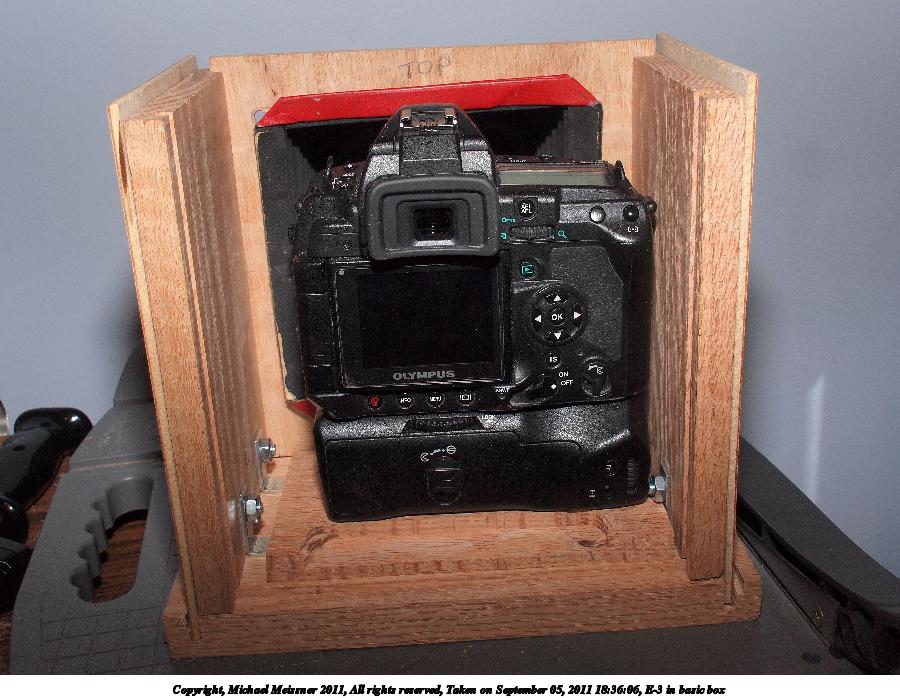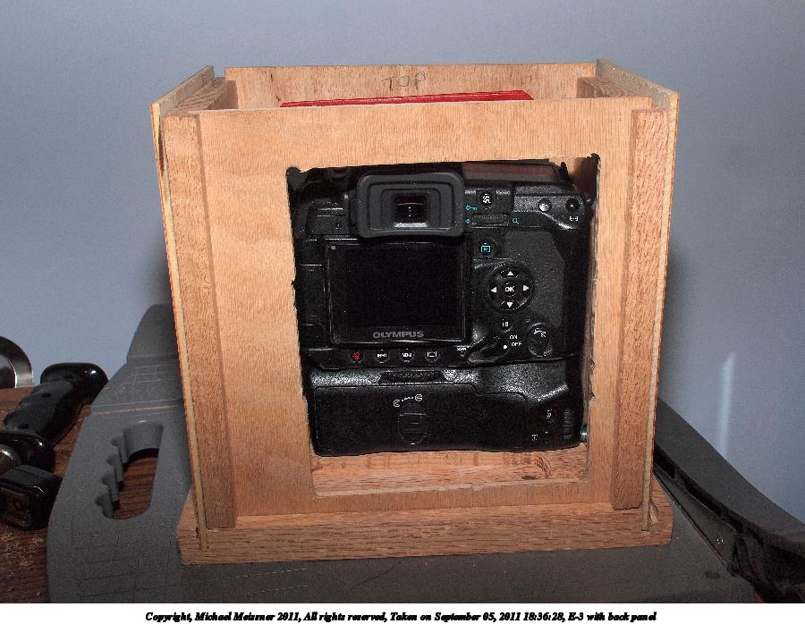 Picture #13: Rear view with E-3 inside Small: 800x823, 119,754 bytes (117K), (html file) Large: 2400x2400, 4,271,917 bytes (4.1M), (html file) Copyright, Michael Meissner 2011, All rights reserved Olympus E-P2 camera with Olympus-m43 14-150mm f/4.0-5.6 lens f/8.0, ISO 200, FL-36 flash (+0.33 flash compensation), 1/60 sec, 15.0mm, aperture priority, vivid color, auto gradation, SHQ, matrix metering, auto + manual focus, IS1 (All Direction Shake IS) 35mm equivalent focal length 30.0mm Extra equipment used: Olympus FL-36 flash Programs used: gimp, raw therapee Taken by Michael Meissner on July 31, 2011 20:49:17 Last modified on July 31, 2011 at 22:50 |