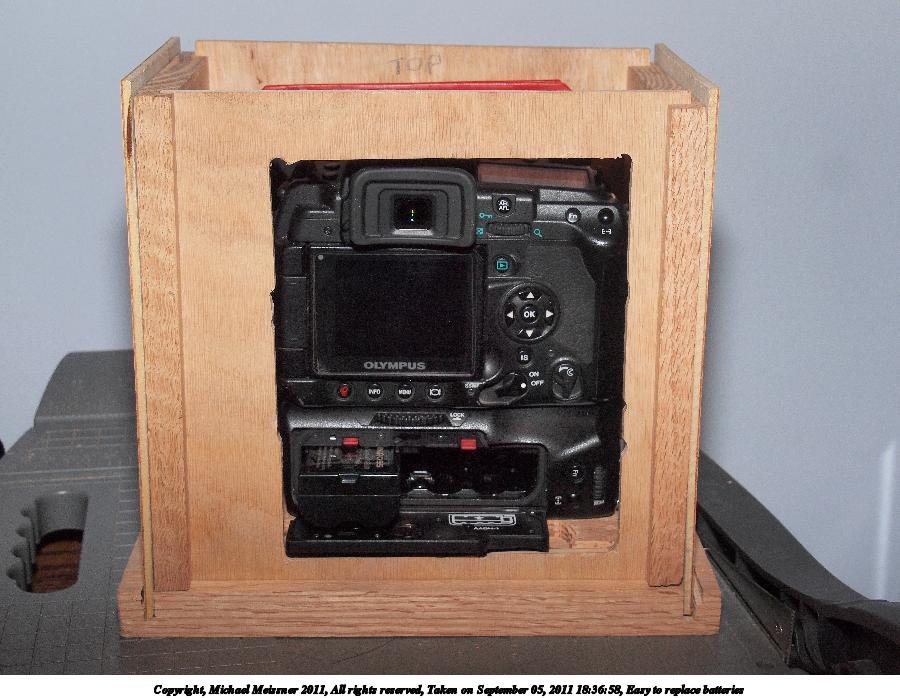 In addition, it will be much easier to change the battery, since the grip has battery doors that open to the back instead of the bottom, to allow changing batteries when the camera is on a tripod. With the previous version of the box, I had an opening cut underneath the battery slot, and I would have to tip the camera to the side to get the battery out, which can be disruptive to squirrels and other things on top of the camera.