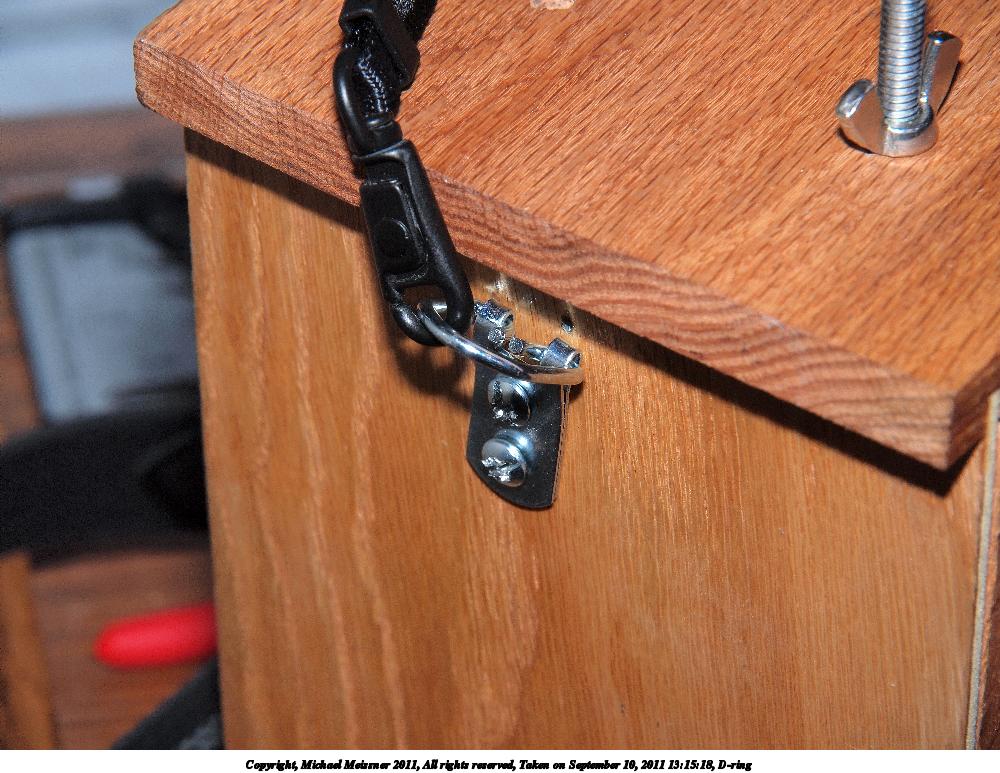 Picture #67: D-ring Small: 1000x773, 146,205 bytes (143K), (html file) Large: 4000x3000, 4,285,250 bytes (4.1M), (html file) Copyright, Michael Meissner 2011, All rights reserved Olympus E-P2 camera with Olympus-m43 14-150mm f/4.0-5.6 lens f/8.0, ISO 200, FL-36 flash (+0.33 flash compensation), 1/160 sec, 80.0mm, aperture priority, vivid color, auto gradation, SHQ, matrix metering, auto + manual focus, IS1 (All Direction Shake IS), noise reduction auto, noise filter low 35mm equivalent focal length 160.0mm Extra equipment used: Olympus FL-36 flash Programs used: raw therapee Taken by Michael Meissner on September 10, 2011 13:15:18 Last modified on September 12, 2011 at 23:35 |