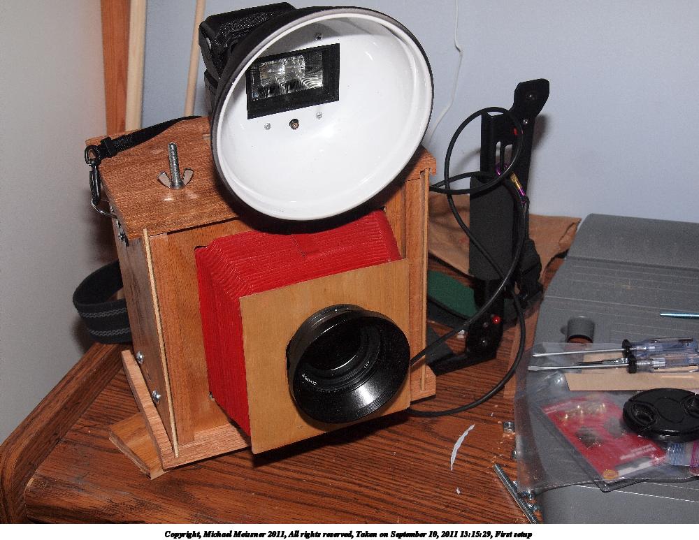 Picture #66: First setup Small: 1000x773, 137,970 bytes (135K), (html file) Large: 4000x3000, 4,030,488 bytes (3.8M), (html file) Copyright, Michael Meissner 2011, All rights reserved Olympus E-P2 camera with Olympus-m43 14-150mm f/4.0-5.6 lens f/8.0, ISO 200, FL-36 flash (+0.33 flash compensation), 1/60 sec, 31.0mm, aperture priority, vivid color, auto gradation, SHQ, matrix metering, auto + manual focus, IS1 (All Direction Shake IS), noise reduction auto, noise filter low 35mm equivalent focal length 62.0mm Extra equipment used: Olympus FL-36 flash Programs used: raw therapee Taken by Michael Meissner on September 10, 2011 13:15:29 Last modified on September 12, 2011 at 23:36 |