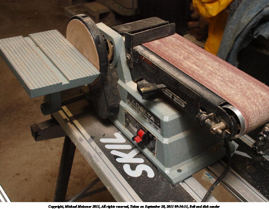 Picture #71: Belt and disk sander Small: 900x698, 133,102 bytes (130K), (html file) Large: 3600x2700, 3,745,766 bytes (3.6M), (html file) Copyright, Michael Meissner 2011, All rights reserved Olympus E-3 camera with Olympus 14-54mm f/2.8-3.5 lens f/8.0, ISO 640, Metz 48 flash (+0.3 flash compensation), 1/60 sec, 22.0mm, aperture priority, vivid color, SHQ, matrix metering, continous focus, IS1 (All Direction Shake IS), noise filter low 35mm equivalent focal length 44.0mm Extra equipment used: Metz 48 flash Programs used: raw therapee Taken by Michael Meissner on September 28, 2011 09:36:31 Last modified on September 28, 2011 at 10:47 |