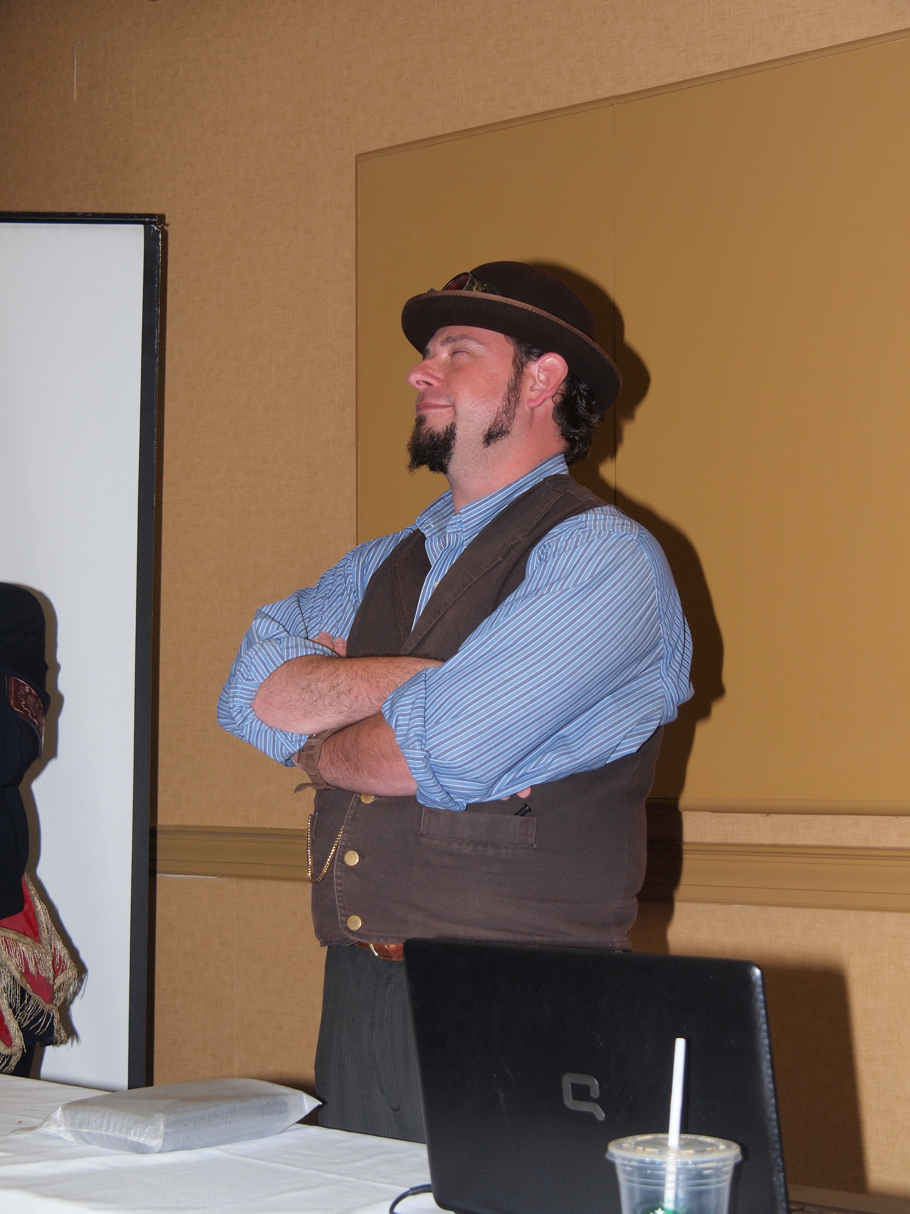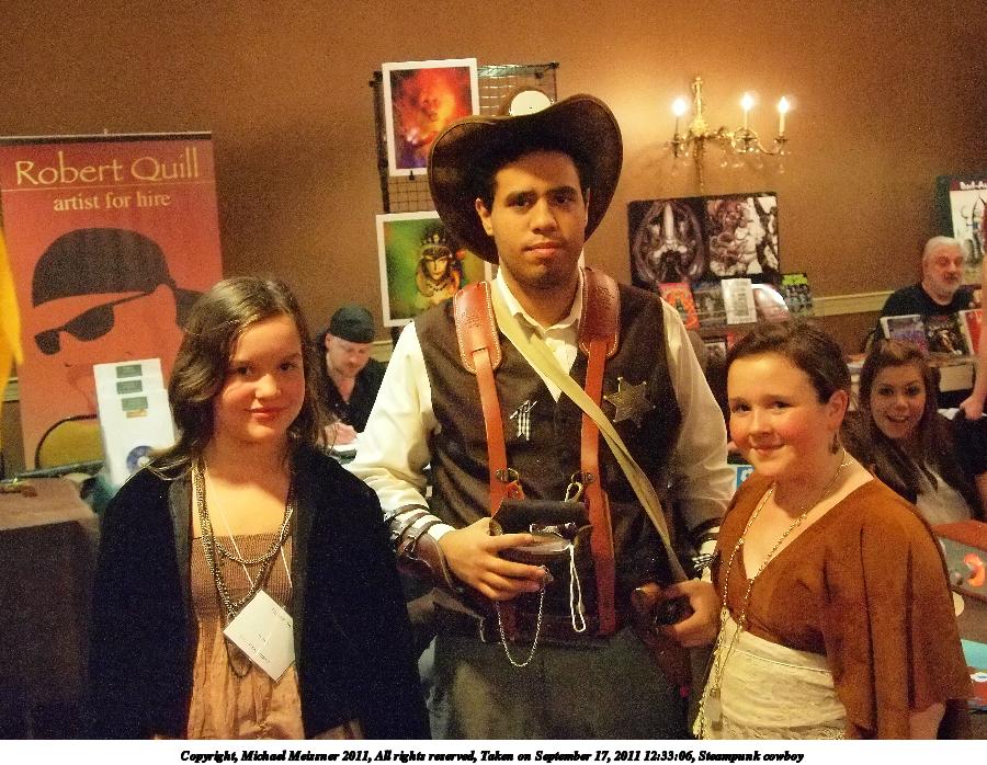 Picture #26: Steampunk cowboy Small: 900x698, 151,565 bytes (149K), (html file) Large: 3600x2700, 9,095,826 bytes (8.7M), (html file) Copyright, Michael Meissner 2011, All rights reserved Olympus E-P2 camera with Olympus-m43 14-42mm f/3.5-5.6 lens f/4.2, ISO 3200, 1/50 sec, 22.0mm, auto mode, vivid color, auto gradation, SHQ, matrix metering, auto + manual focus, IS1 (All Direction Shake IS), noise reduction auto, noise filter low 35mm equivalent focal length 44.0mm Programs used: NoiseNinja, gimp Taken by Michael Meissner on September 17, 2011 12:33:06 Last modified on January 01, 2012 at 22:11 |