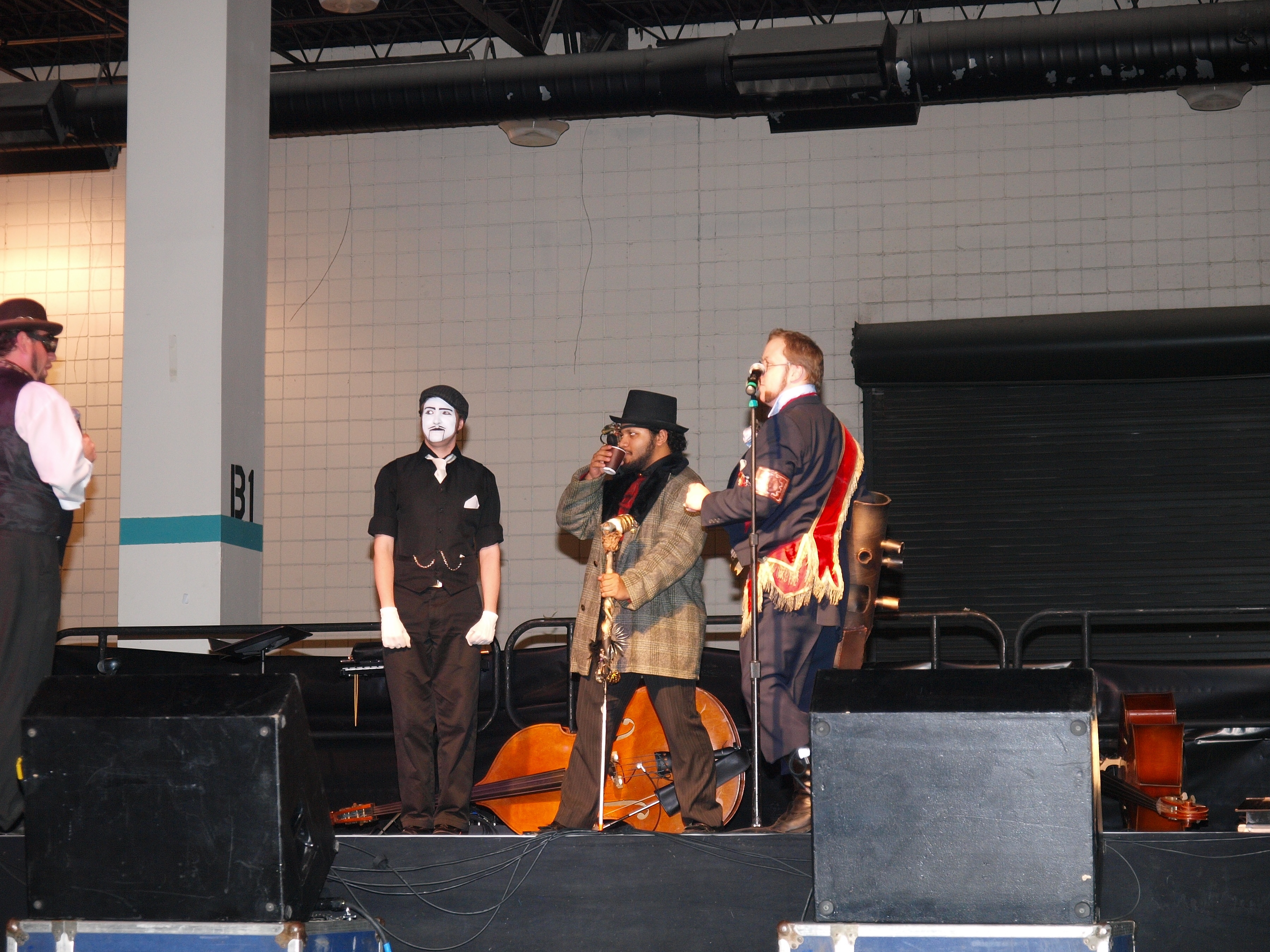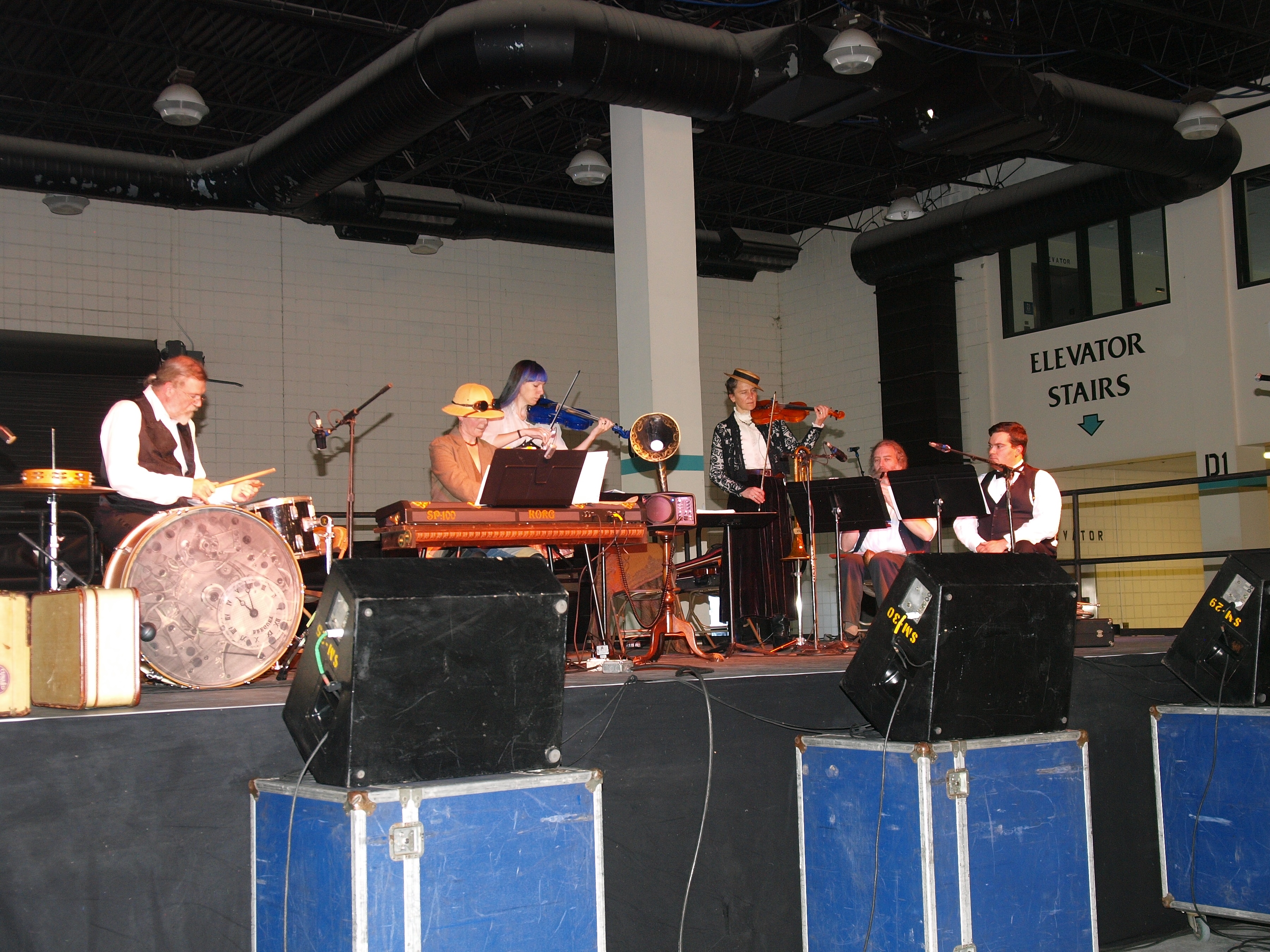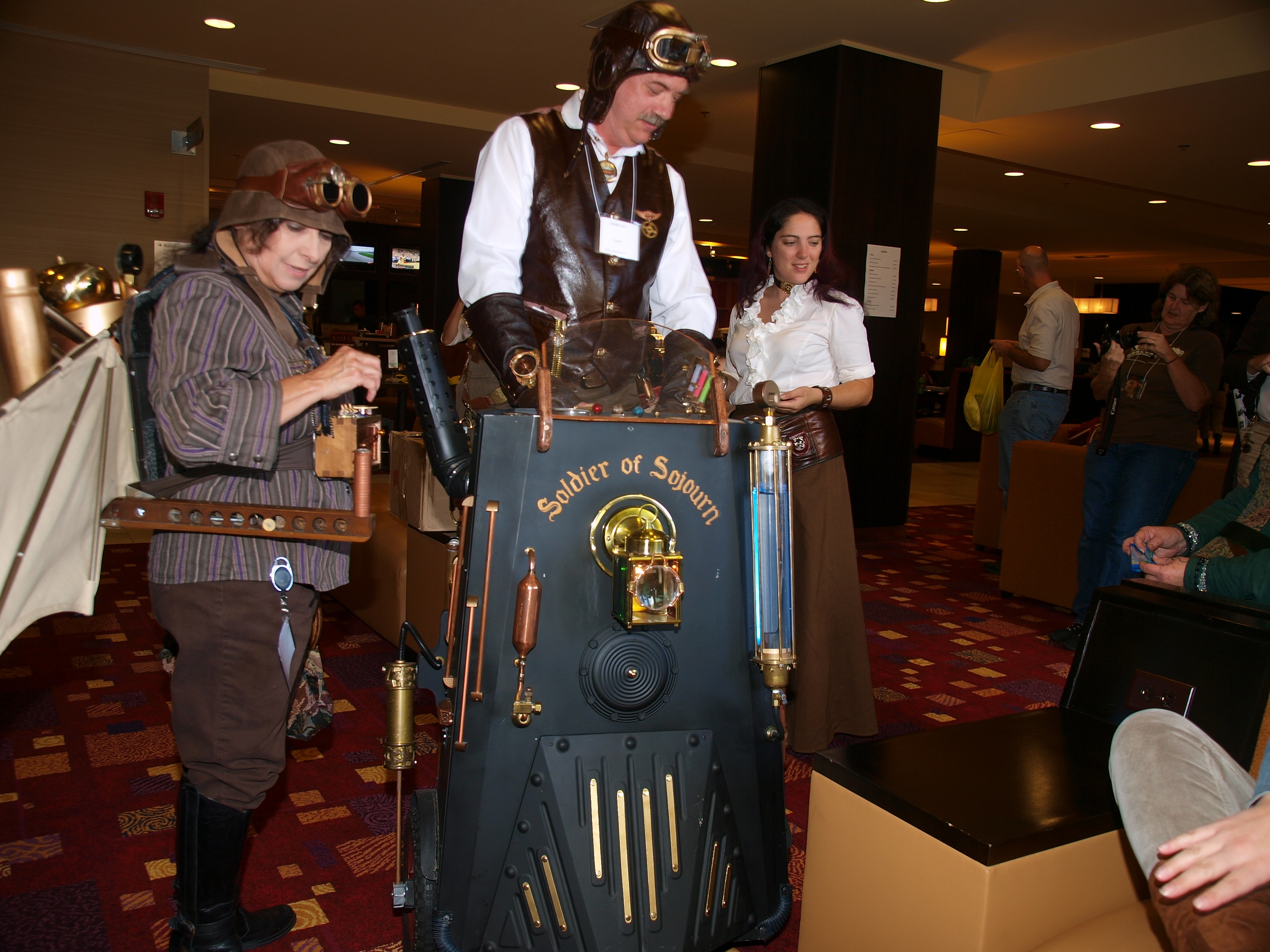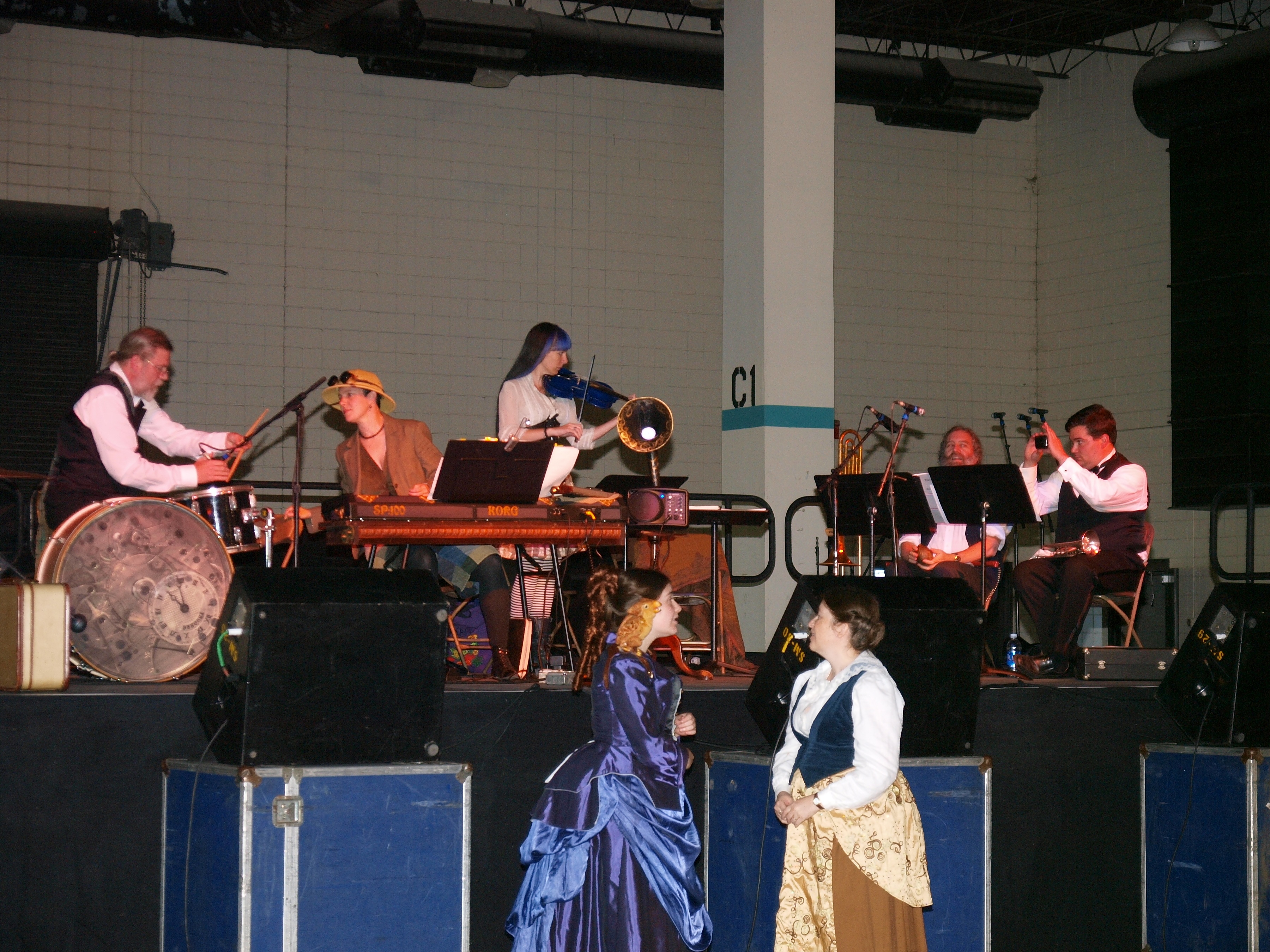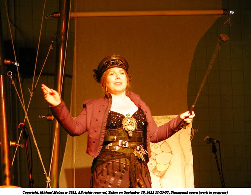 Picture #14: Steampunk opera (work in progress) Small: 800x623, 73,195 bytes (72K), (html file) Large: 1600x1200, 503,674 bytes (492K), (html file) Copyright, Michael Meissner 2011, All rights reserved Olympus C-2100UZ camera f/2.8, ISO 100, 1/125 sec, 27.3mm, auto mode, SHQ, cloudy, matrix metering 35mm equivalent focal length 151.0mm Programs used: raw therapee Taken by Michael Meissner on September 18, 2011 11:25:14 Last modified on January 02, 2012 at 16:45 Shutter speed of 1/125 or 1/250 may indicate use of flash |