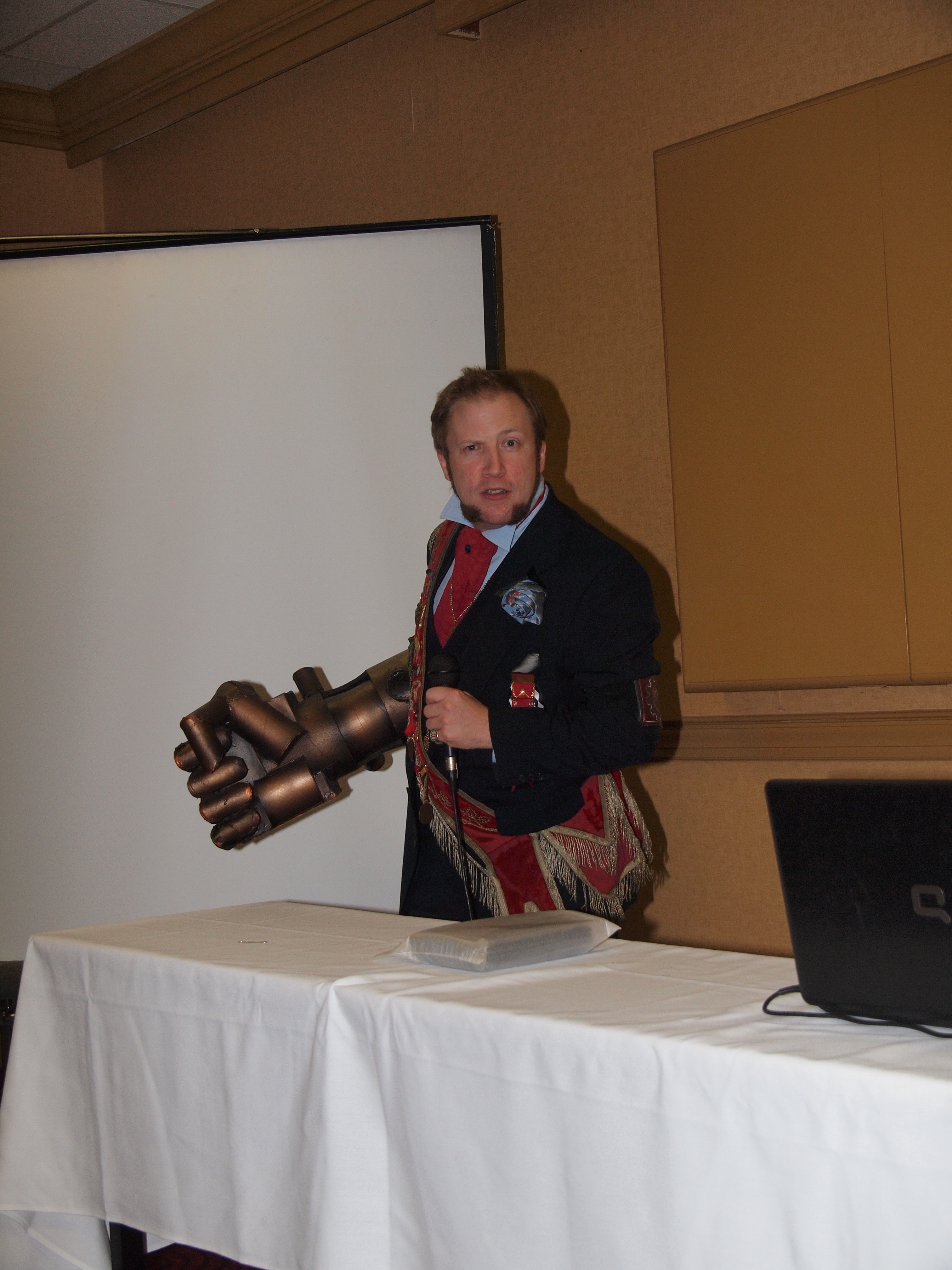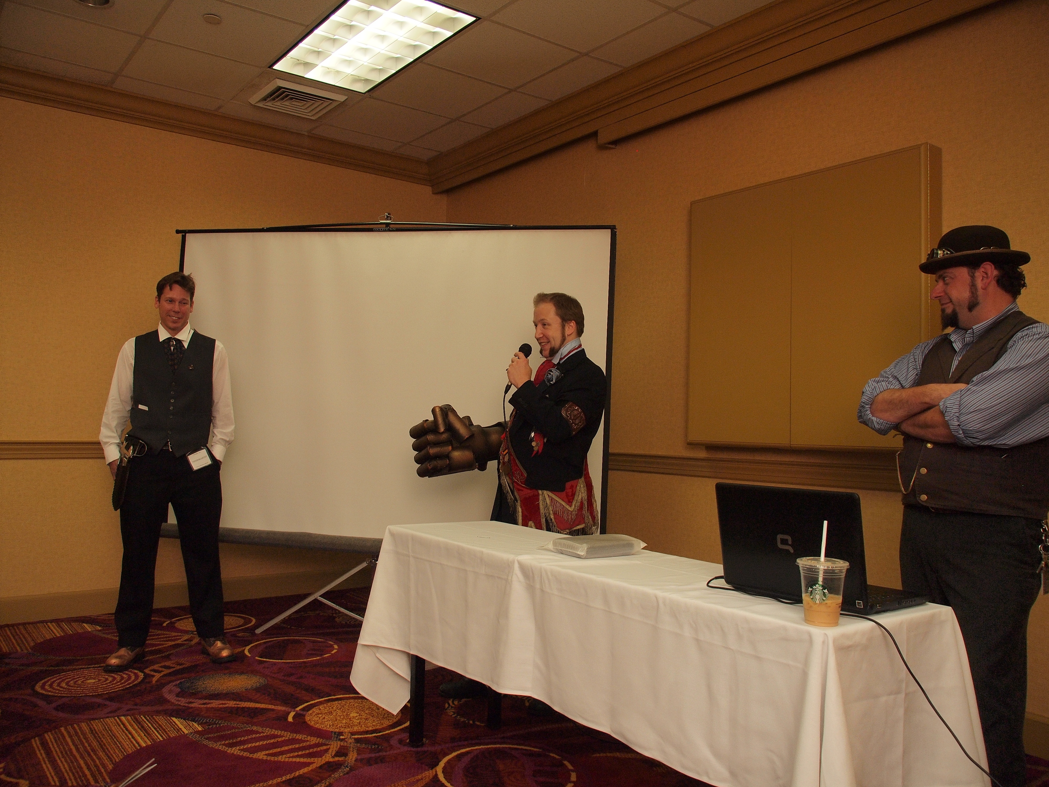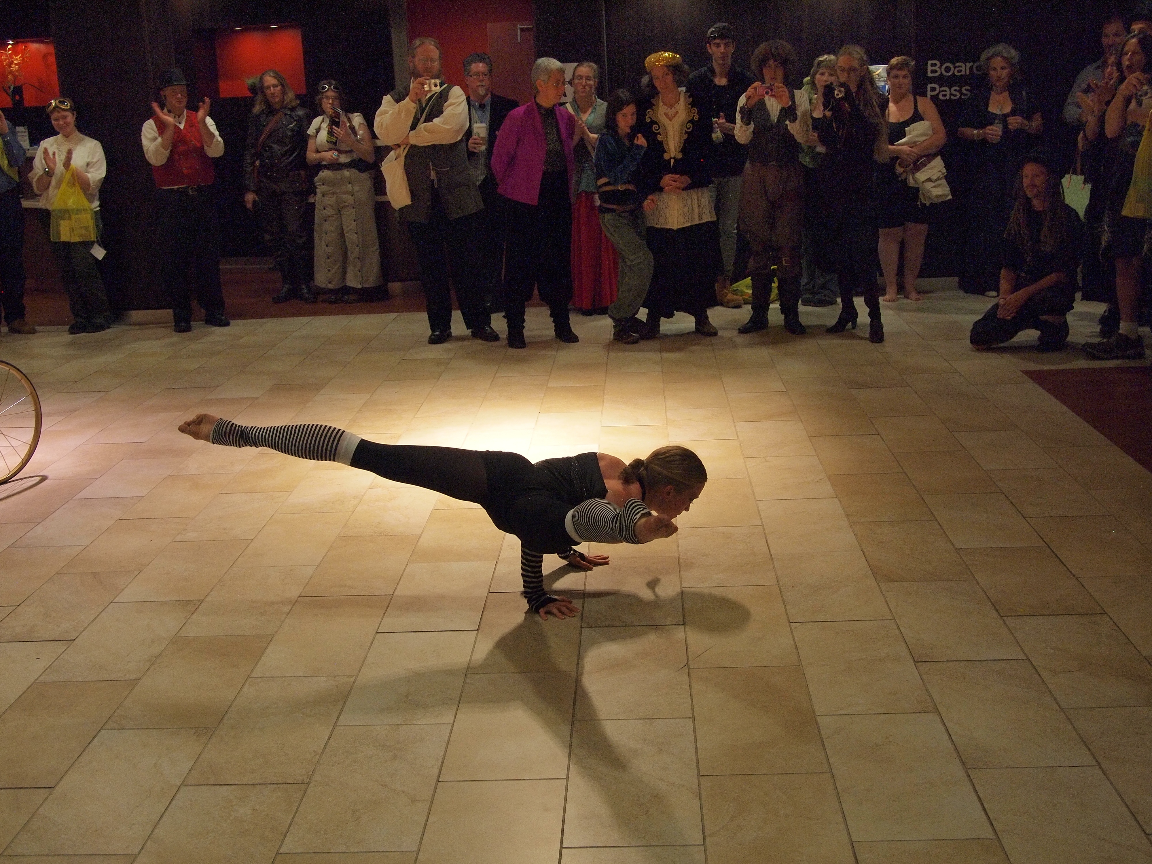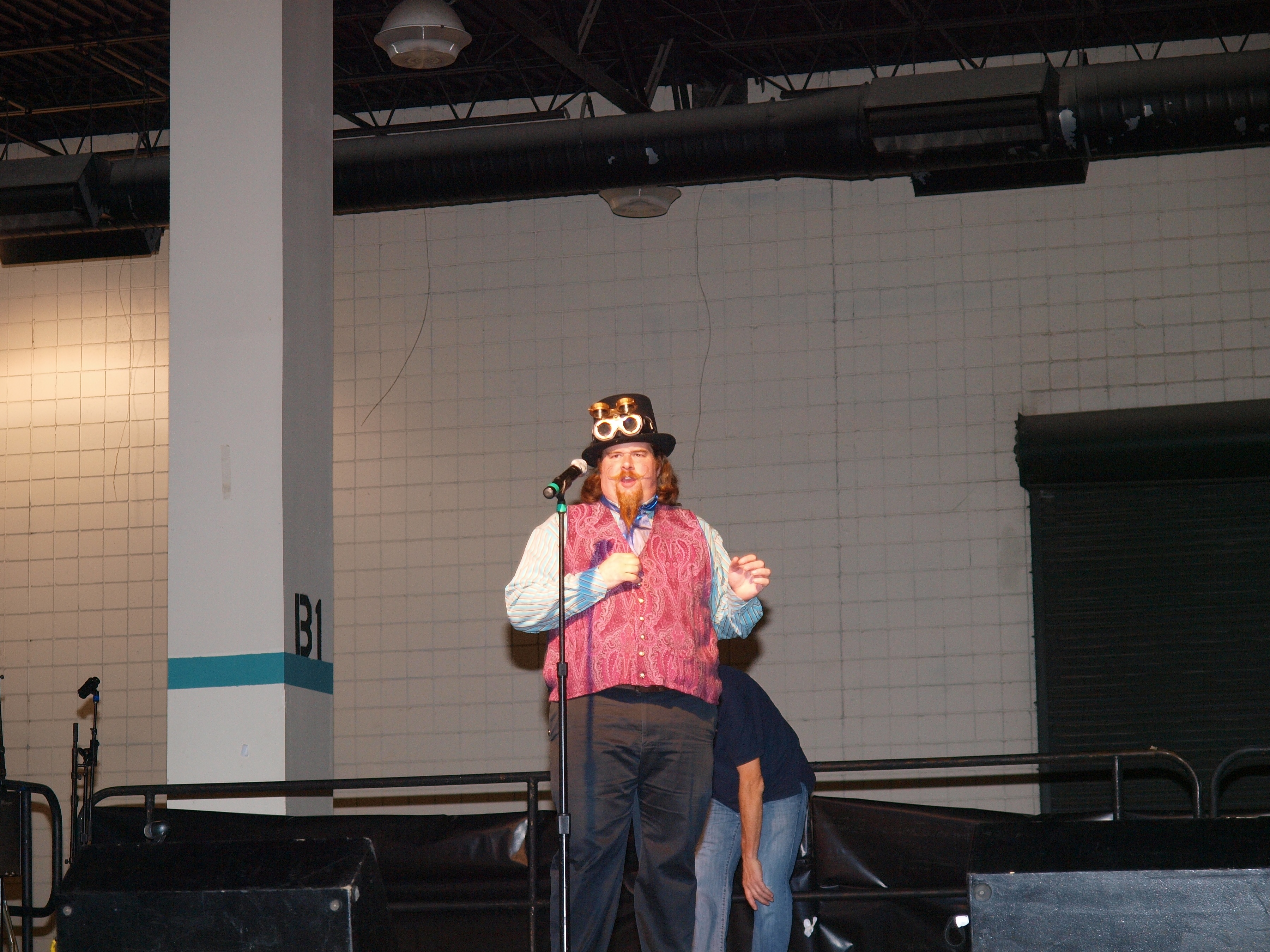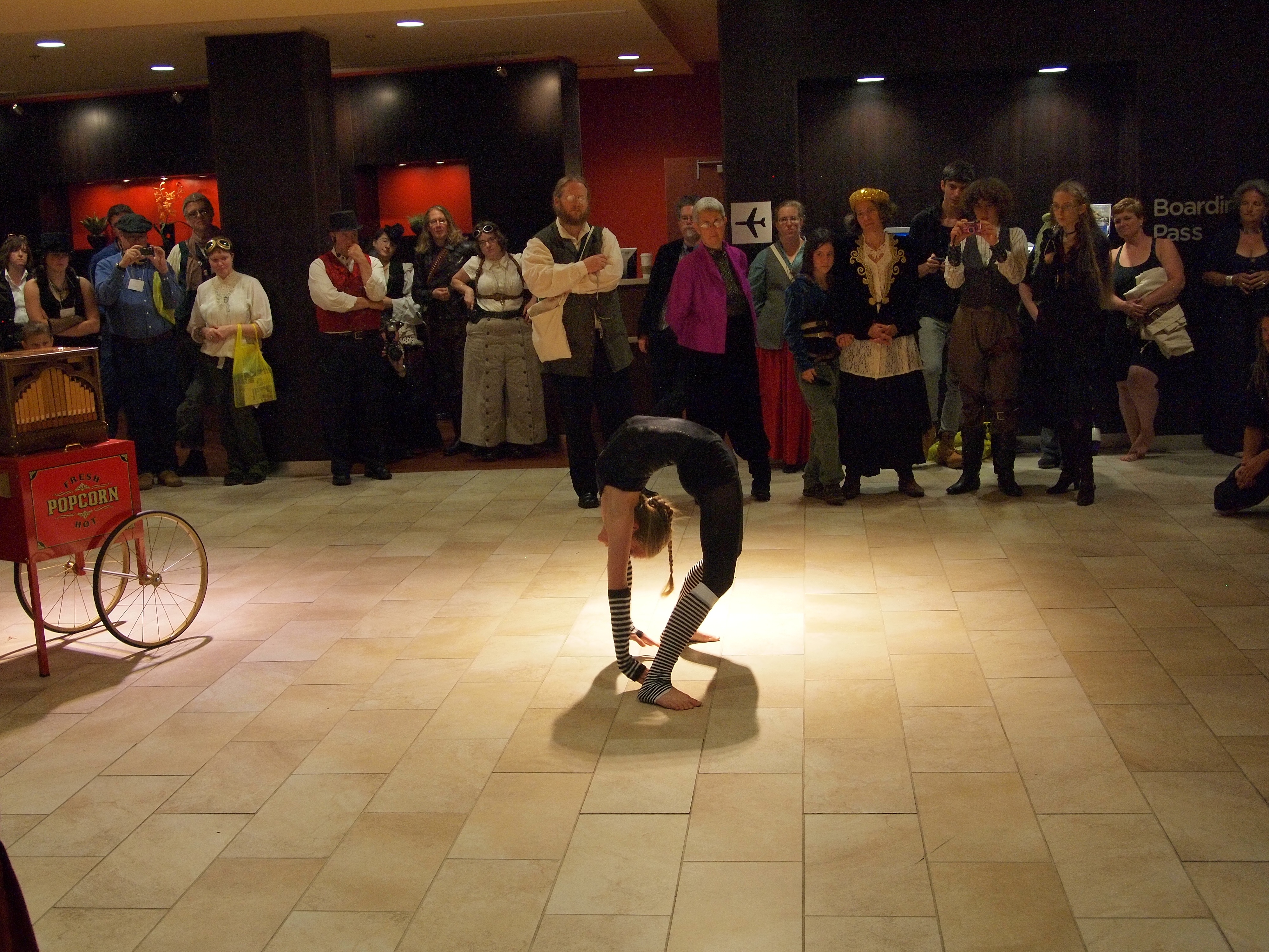 Picture #14: Steampunk opera (work in progress) Small: 800x623, 73,195 bytes (72K), (html file) Large: 1600x1200, 503,674 bytes (492K), (html file) Copyright, Michael Meissner 2011, All rights reserved Olympus C-2100UZ camera f/2.8, ISO 100, 1/125 sec, 27.3mm, auto mode, SHQ, cloudy, matrix metering 35mm equivalent focal length 151.0mm Programs used: raw therapee Taken by Michael Meissner on September 18, 2011 11:25:14 Last modified on January 02, 2012 at 16:45 Shutter speed of 1/125 or 1/250 may indicate use of flash |