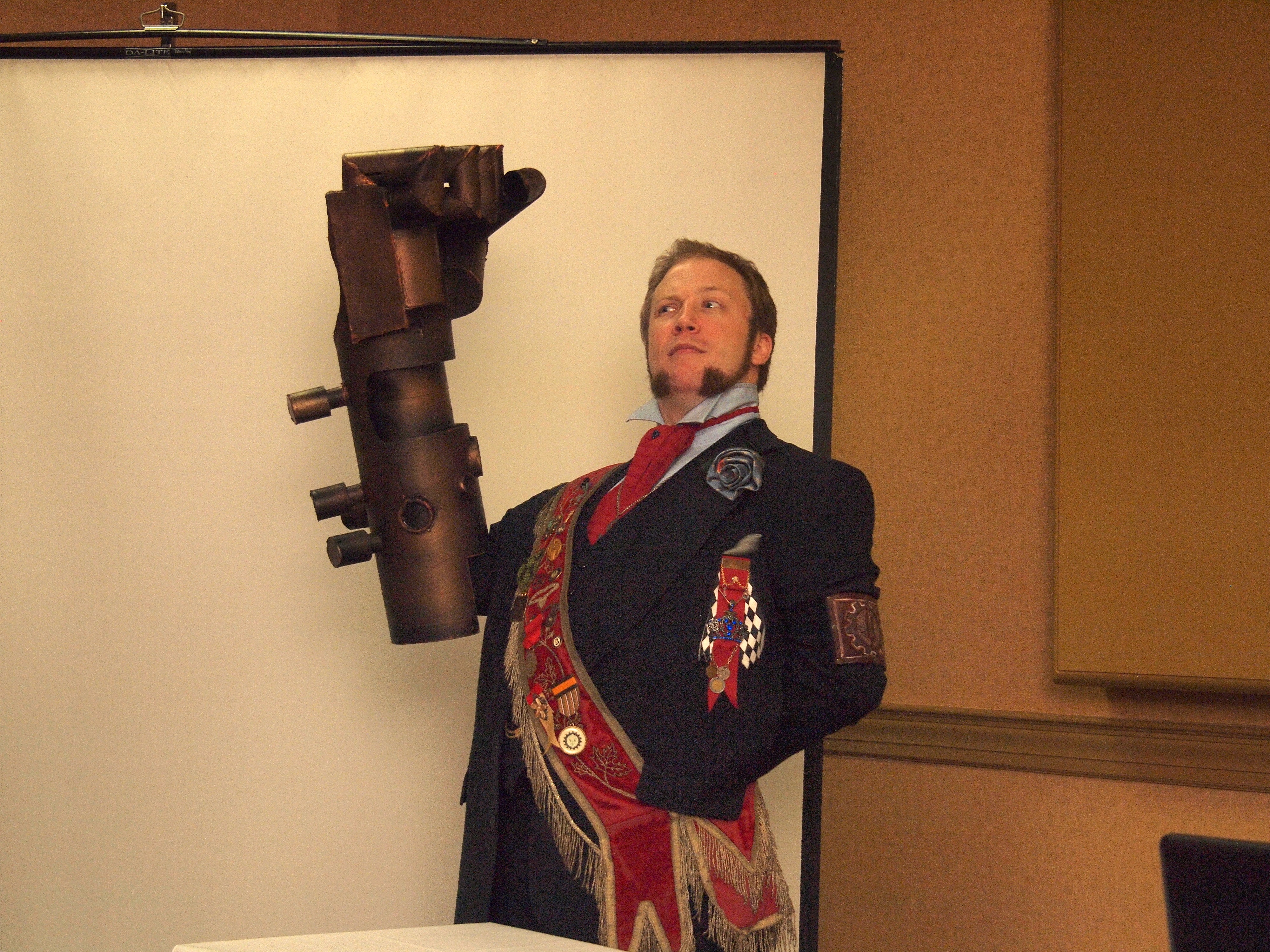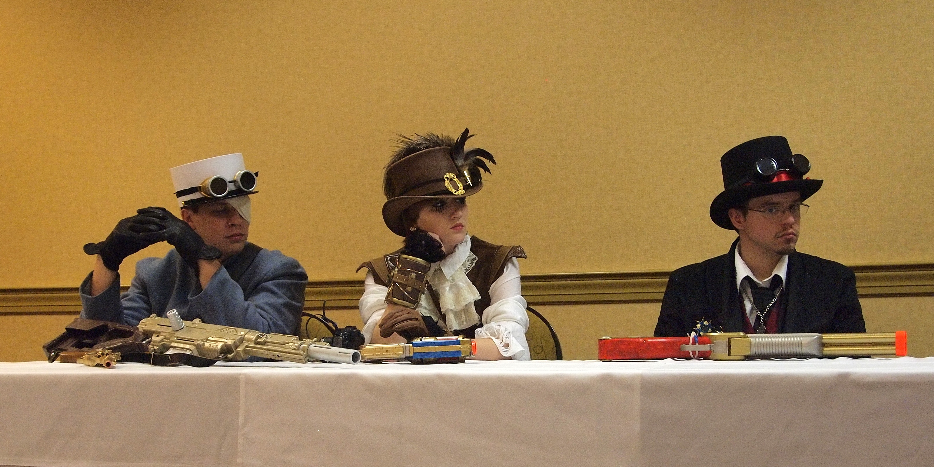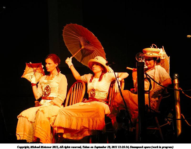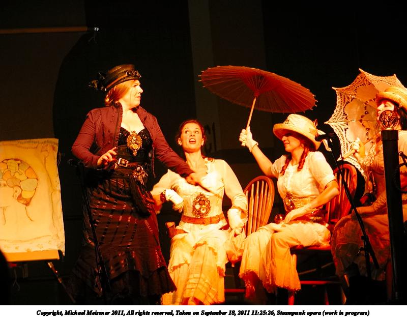 Picture #11: Steampunk opera (work in progress) #4 Small: 800x623, 84,900 bytes (83K), (html file) Large: 1600x1200, 597,979 bytes (584K), (html file) Copyright, Michael Meissner 2011, All rights reserved Olympus C-2100UZ camera f/2.8, ISO 100, 1/125 sec, 24.2mm, auto mode, SHQ, cloudy, matrix metering 35mm equivalent focal length 134.0mm Programs used: raw therapee Taken by Michael Meissner on September 18, 2011 11:34:11 Last modified on January 02, 2012 at 16:45 Shutter speed of 1/125 or 1/250 may indicate use of flash |