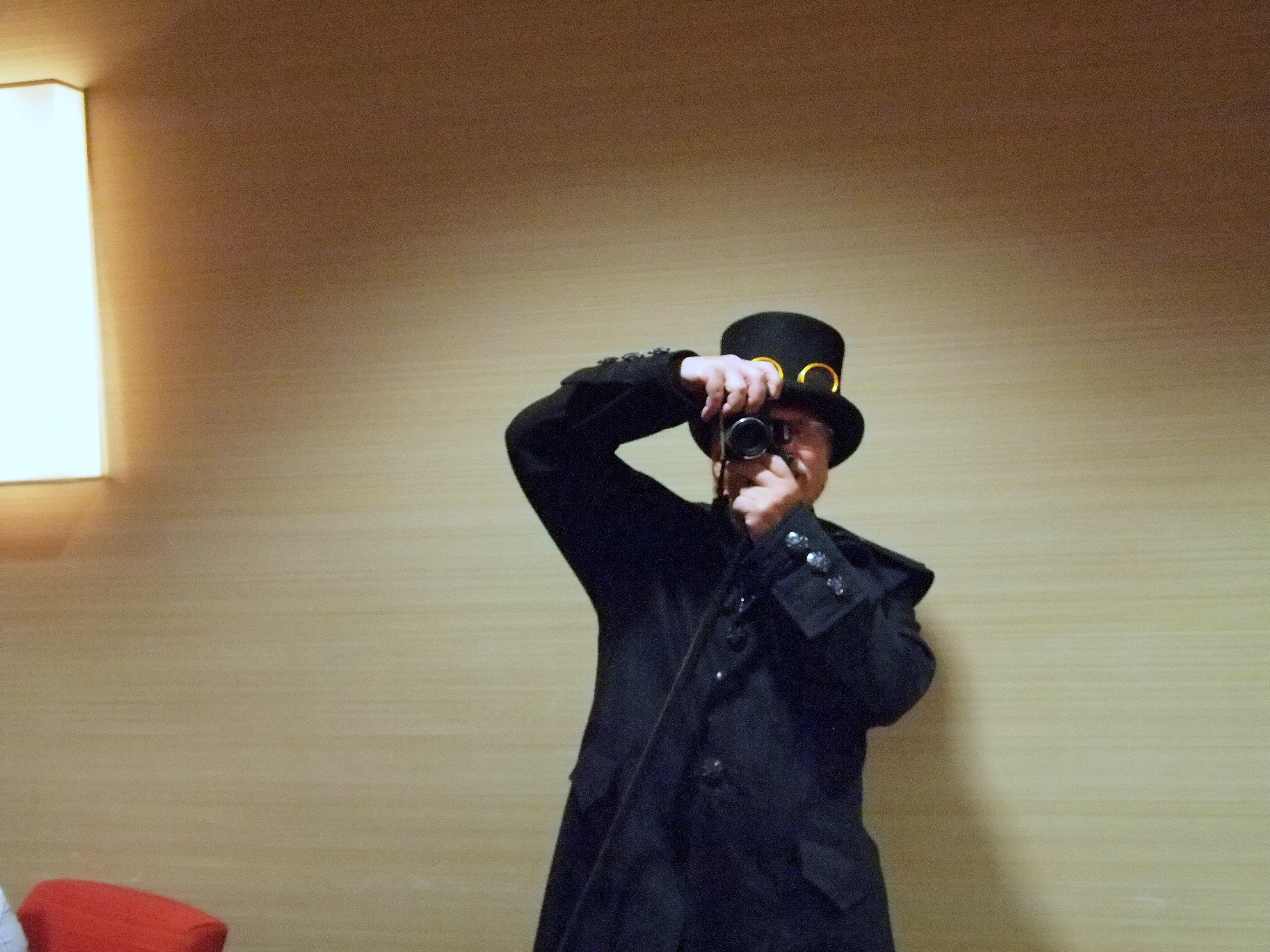 Picture #120: The steampunk photographer is photographed Small: 900x698, 79,753 bytes (78K), (html file) Large: 3600x2700, 2,460,538 bytes (2.3M), (html file) Copyright, Michael Meissner 2011, All rights reserved Olympus E-3 camera with Olympus 14-54mm f/2.8-3.5 lens f/3.0, ISO 100, Metz 48 flash (+0.3 flash compensation), 1/60 sec, 22.0mm, auto mode, vivid color, SHQ, matrix metering, noise filter low 35mm equivalent focal length 44.0mm Extra equipment used: Metz 48 flash Programs used: raw therapee Taken by Michael Meissner on September 16, 2011 15:13:23 Last modified on December 29, 2011 at 00:27 |