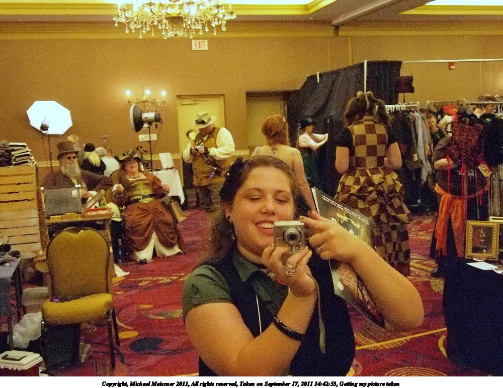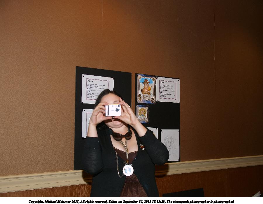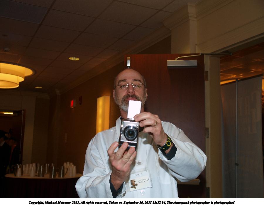 Picture #119: The steampunk photographer is photographed #2 Small: 900x698, 69,474 bytes (68K), (html file) Large: 3600x2700, 2,068,723 bytes (2.0M), (html file) Copyright, Michael Meissner 2011, All rights reserved Olympus E-3 camera with Olympus 14-54mm f/2.8-3.5 lens f/3.0, ISO 100, Metz 48 flash (+0.3 flash compensation), 1/60 sec, 22.0mm, auto mode, vivid color, SHQ, matrix metering, noise filter low 35mm equivalent focal length 44.0mm Extra equipment used: Metz 48 flash Programs used: raw therapee Taken by Michael Meissner on September 16, 2011 15:17:14 Last modified on December 29, 2011 at 00:28 |