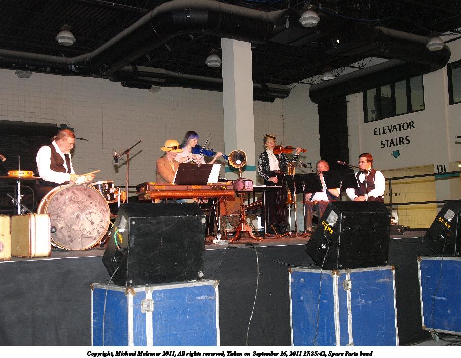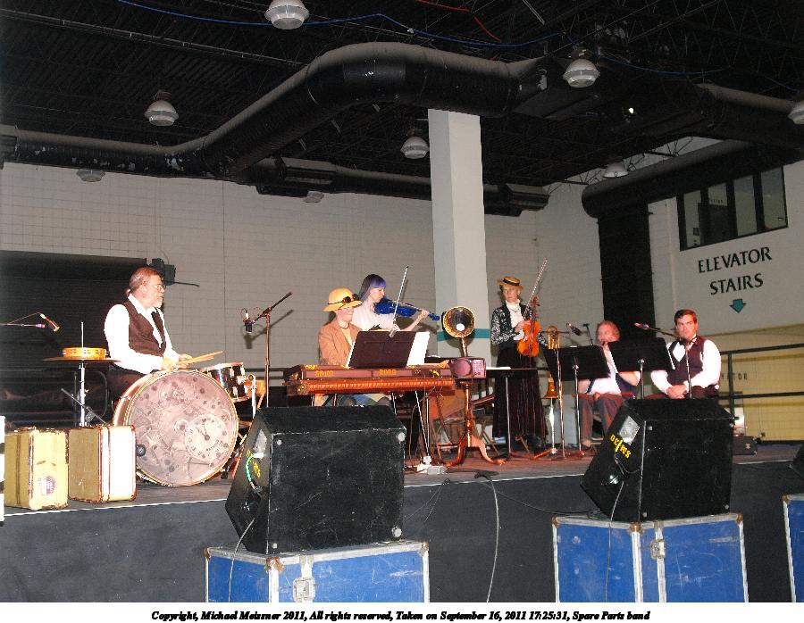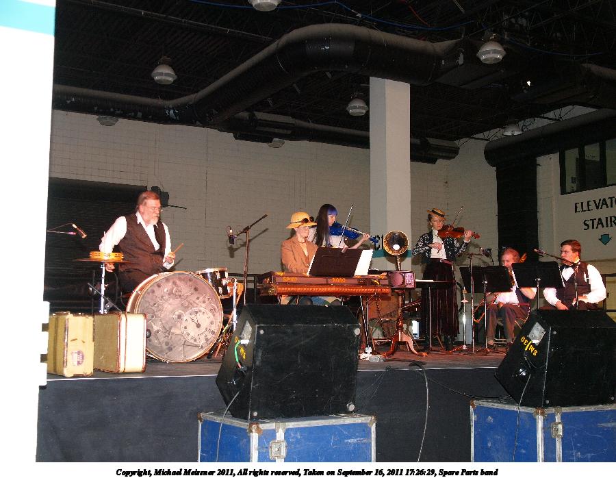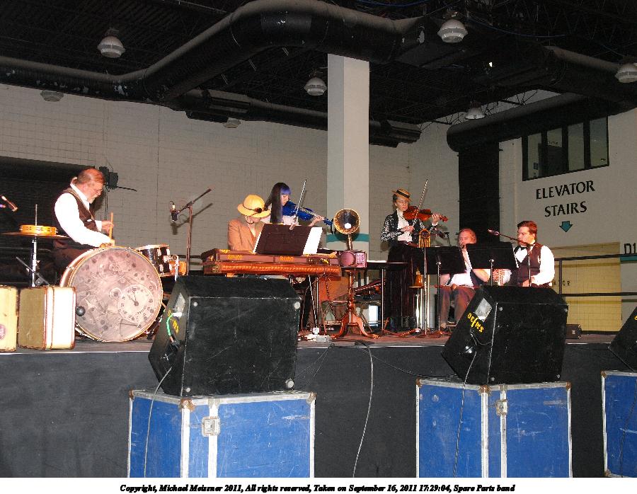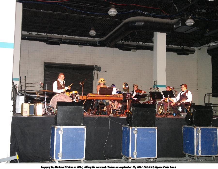 Picture #98: Spare Parts band #4 Small: 900x698, 127,798 bytes (125K), (html file) Large: 3600x2700, 3,444,432 bytes (3.3M), (html file) Copyright, Michael Meissner 2011, All rights reserved Olympus E-3 camera with Olympus 14-54mm f/2.8-3.5 lens f/3.0, ISO 500, Metz 48 flash (+0.3 flash compensation), 1/60 sec, 22.0mm, auto mode, vivid color, SHQ, matrix metering, noise filter low 35mm equivalent focal length 44.0mm Extra equipment used: Metz 48 flash Programs used: raw therapee Taken by Michael Meissner on September 16, 2011 17:29:04 Last modified on January 01, 2012 at 00:43 |