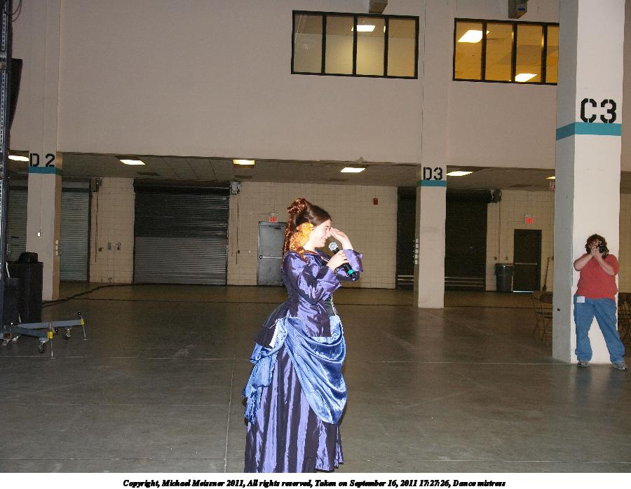 Picture #100: Dance mistress Small: 900x698, 98,451 bytes (97K), (html file) Large: 3600x2700, 2,955,532 bytes (2.8M), (html file) Copyright, Michael Meissner 2011, All rights reserved Olympus E-3 camera with Olympus 14-54mm f/2.8-3.5 lens f/3.0, ISO 320, Metz 48 flash (+0.3 flash compensation), 1/60 sec, 22.0mm, auto mode, vivid color, SHQ, matrix metering, noise filter low 35mm equivalent focal length 44.0mm Extra equipment used: Metz 48 flash Programs used: raw therapee Taken by Michael Meissner on September 16, 2011 17:27:26 Last modified on January 01, 2012 at 00:43 |