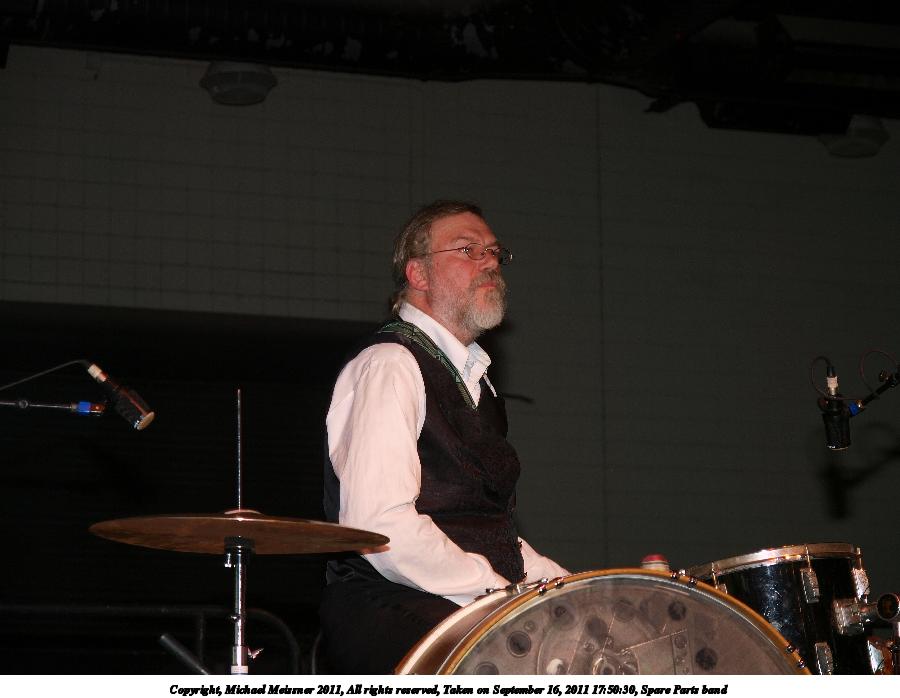 Picture #87: Spare Parts band #8 Small: 900x698, 109,201 bytes (107K), (html file) Large: 3600x2700, 3,018,206 bytes (2.9M), (html file) Copyright, Michael Meissner 2011, All rights reserved Olympus E-3 camera with Olympus 14-54mm f/2.8-3.5 lens f/3.5, ISO 400, Metz 48 flash (+0.3 flash compensation), 1/100 sec, 54.0mm, auto mode, vivid color, SHQ, matrix metering, noise filter low 35mm equivalent focal length 108.0mm Extra equipment used: Metz 48 flash Programs used: raw therapee Taken by Michael Meissner on September 16, 2011 17:50:43 Last modified on January 01, 2012 at 00:46 |
