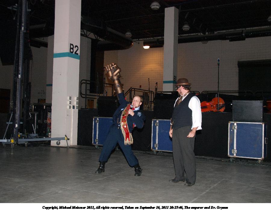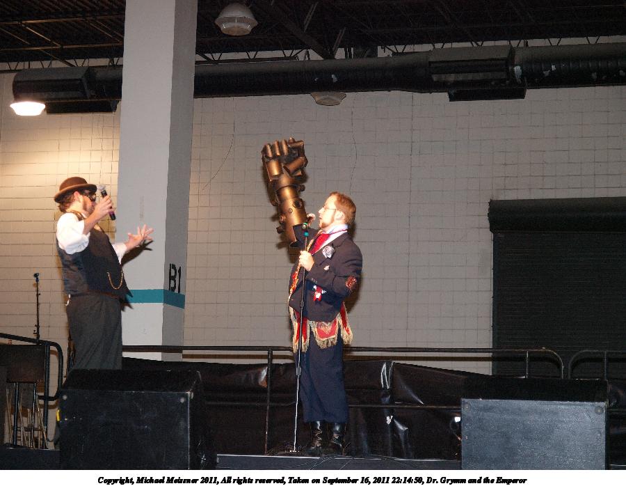 Picture #44: Dr. Grymm and the Emperor #2 Small: 900x698, 102,792 bytes (101K), (html file) Large: 3600x2700, 2,927,668 bytes (2.8M), (html file) Copyright, Michael Meissner 2011, All rights reserved Olympus E-3 camera with Olympus 14-54mm f/2.8-3.5 lens f/2.8, ISO 200, Metz 48 flash (+0.3 flash compensation), 1/60 sec, 17.0mm, auto mode, vivid color, SHQ, matrix metering, noise filter low 35mm equivalent focal length 34.0mm Extra equipment used: Metz 48 flash Programs used: raw therapee Taken by Michael Meissner on September 16, 2011 22:55:13 Last modified on January 01, 2012 at 15:34 |
