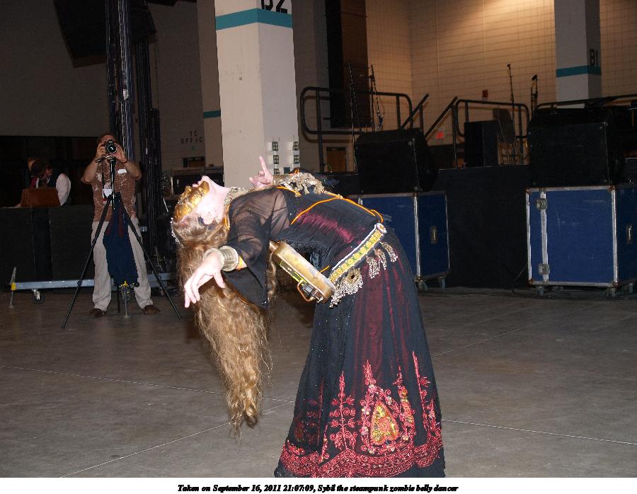 Picture #61: Sybil the steampunk zombie belly dancer Small: 600x823, 80,511 bytes (79K), (html file) Large: 1200x1600, 1,416,628 bytes (1.4M), (html file) Olympus E-3 camera with Olympus 14-54mm f/2.8-3.5 lens f/3.1, ISO 250, Metz 48 flash (+0.3 flash compensation), 1/60 sec, 27.0mm, auto mode, vivid color, SHQ, matrix metering, noise filter low 35mm equivalent focal length 54.0mm Extra equipment used: Metz 48 flash Programs used: gimp, raw therapee Taken by Michael Meissner on September 16, 2011 21:05:56 Last modified on January 01, 2012 at 16:01 |