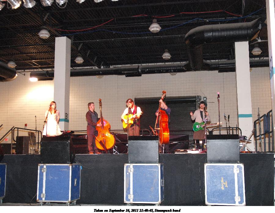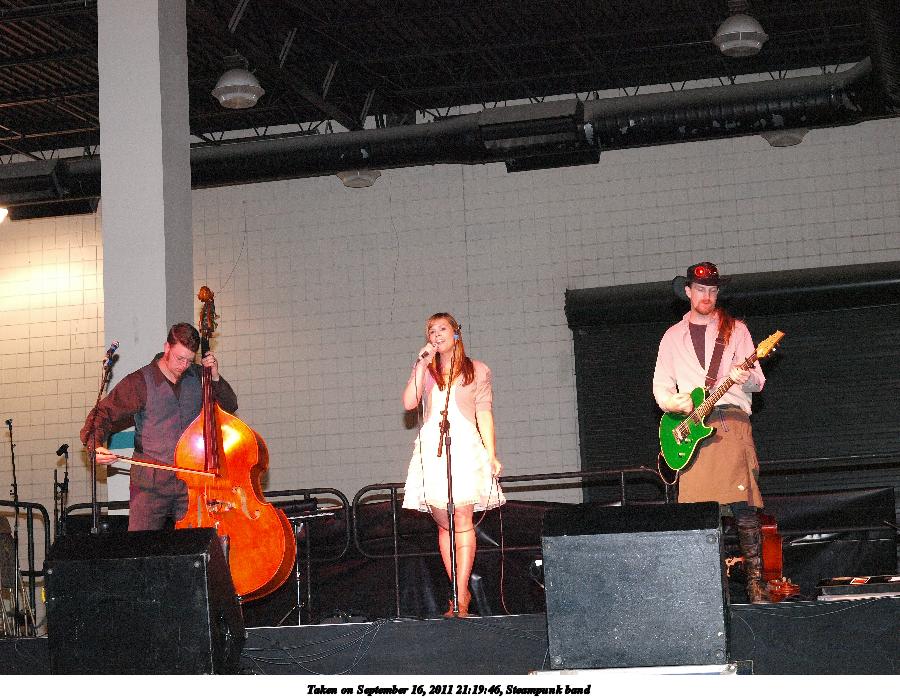 Picture #58: Steampunk band Small: 900x698, 134,946 bytes (132K), (html file) Large: 3600x2700, 4,026,118 bytes (3.8M), (html file) Olympus E-3 camera with Olympus 14-54mm f/2.8-3.5 lens f/5.6, ISO 1250, Metz 48 flash (+0.3 flash compensation), 1/80 sec, 40.0mm, aperture priority, vivid color, SHQ, matrix metering, noise filter low 35mm equivalent focal length 80.0mm Extra equipment used: Metz 48 flash Programs used: raw therapee Taken by Michael Meissner on September 16, 2011 21:19:46 Last modified on January 01, 2012 at 16:02 |