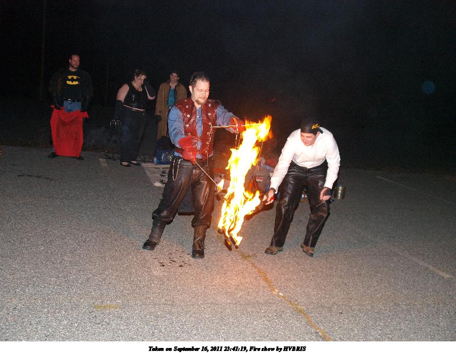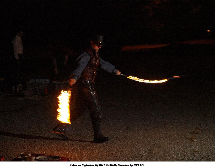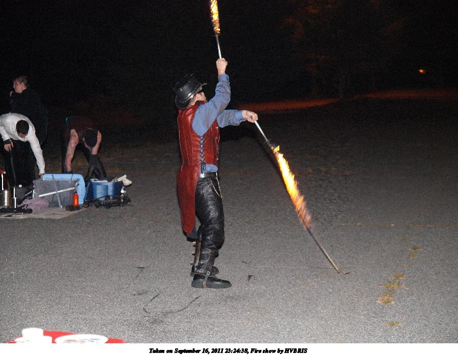 Picture #42: Fire show by HVBRIS #2 Small: 900x698, 115,260 bytes (113K), (html file) Large: 3600x2700, 3,839,153 bytes (3.7M), (html file) Olympus E-3 camera with Olympus 14-54mm f/2.8-3.5 lens f/3.5, ISO 800, Metz 48 flash (+0.3 flash compensation), 1/100 sec, 54.0mm, auto mode, vivid color, SHQ, matrix metering, noise filter low 35mm equivalent focal length 108.0mm Extra equipment used: Metz 48 flash Programs used: raw therapee Taken by Michael Meissner on September 16, 2011 23:24:38 Last modified on January 01, 2012 at 15:57 |