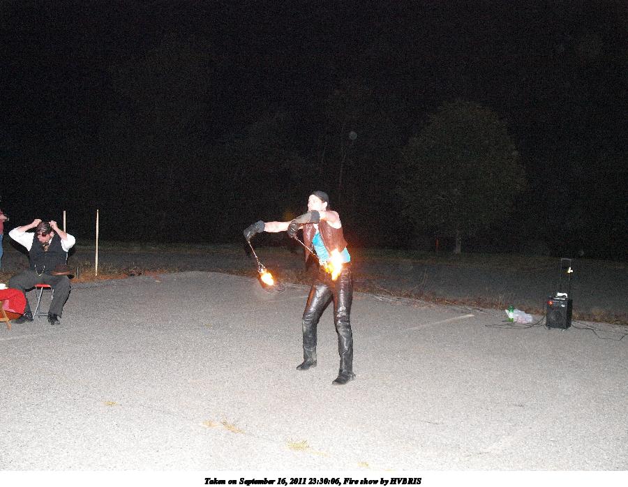 Picture #29: Fire show by HVBRIS #15 Small: 900x698, 107,568 bytes (106K), (html file) Large: 3600x2700, 3,304,438 bytes (3.2M), (html file) Copyright, Michael Meissner 2011, All rights reserved Olympus E-3 camera with Olympus 14-54mm f/2.8-3.5 lens f/2.9, ISO 125, Metz 48 flash (+0.3 flash compensation), 1/60 sec, 20.0mm, auto mode, vivid color, SHQ, matrix metering, noise filter low 35mm equivalent focal length 40.0mm Extra equipment used: Metz 48 flash Programs used: raw therapee Taken by Michael Meissner on September 16, 2011 23:52:23 Last modified on January 01, 2012 at 15:52 |