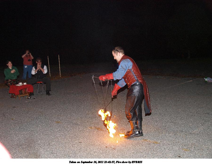 Picture #30: Fire show by HVBRIS #14 Small: 900x698, 103,212 bytes (101K), (html file) Large: 3600x2700, 3,343,178 bytes (3.2M), (html file) Copyright, Michael Meissner 2011, All rights reserved Olympus E-3 camera with Olympus 14-54mm f/2.8-3.5 lens f/2.9, ISO 250, Metz 48 flash (+0.3 flash compensation), 1/60 sec, 20.0mm, auto mode, vivid color, SHQ, matrix metering, noise filter low 35mm equivalent focal length 40.0mm Extra equipment used: Metz 48 flash Programs used: raw therapee Taken by Michael Meissner on September 16, 2011 23:48:04 Last modified on January 01, 2012 at 15:52 |