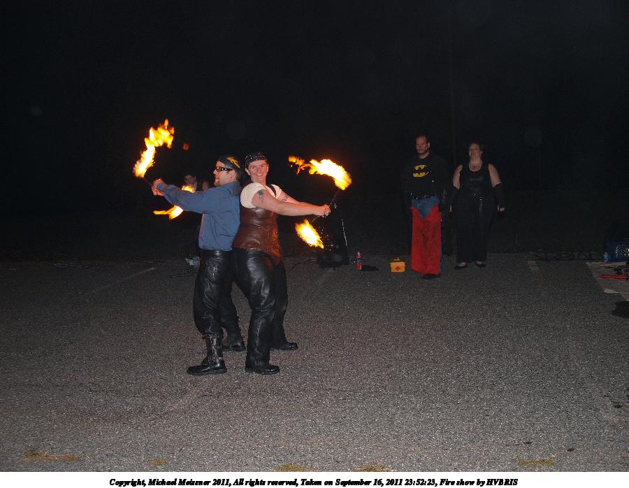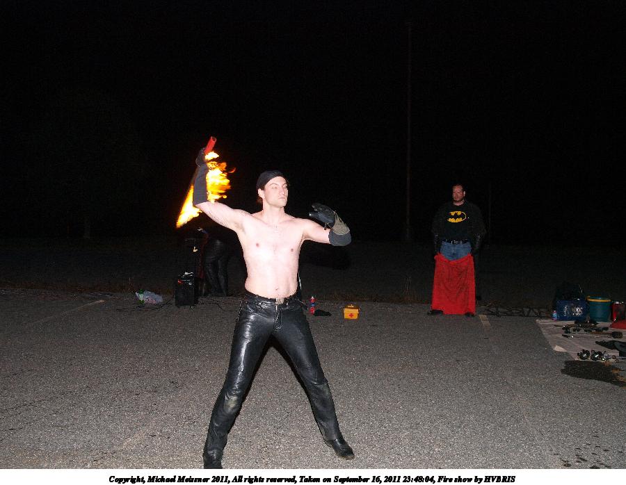 Picture #31: Fire show by HVBRIS #13 Small: 900x698, 113,574 bytes (111K), (html file) Large: 3600x2700, 3,659,665 bytes (3.5M), (html file) Copyright, Michael Meissner 2011, All rights reserved Olympus E-3 camera with Olympus 14-54mm f/2.8-3.5 lens f/2.9, ISO 500, Metz 48 flash (+0.3 flash compensation), 1/60 sec, 20.0mm, auto mode, vivid color, SHQ, matrix metering, noise filter low 35mm equivalent focal length 40.0mm Extra equipment used: Metz 48 flash Programs used: raw therapee Taken by Michael Meissner on September 16, 2011 23:48:01 Last modified on January 01, 2012 at 15:51 |