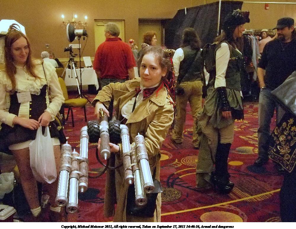 Picture #78: Steampunk women Small: 900x698, 140,617 bytes (138K), (html file) Large: 3600x2700, 3,956,152 bytes (3.8M), (html file) Copyright, Michael Meissner 2011, All rights reserved Olympus E-3 camera with Olympus 14-54mm f/2.8-3.5 lens f/2.8, ISO 1250, 1/60 sec, 14.0mm, auto mode, vivid color, SHQ, matrix metering, noise filter low 35mm equivalent focal length 28.0mm Programs used: raw therapee Taken by Michael Meissner on September 16, 2011 19:39:32 Last modified on January 01, 2012 at 01:01 |