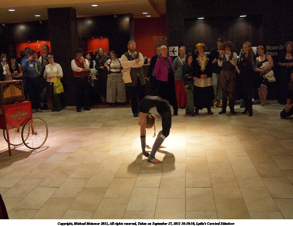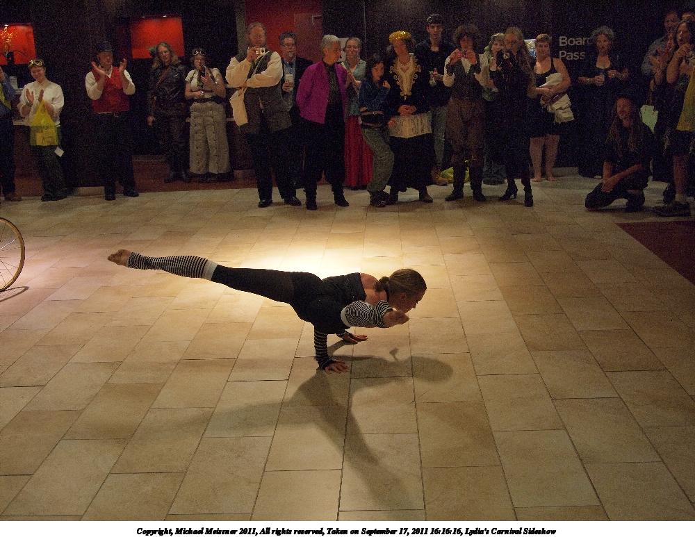 Picture #18: Lydia's Carnival Sideshow #2 Small: 1000x773, 140,191 bytes (137K), (html file) Large: 4000x3000, 4,233,089 bytes (4.0M), (html file) Copyright, Michael Meissner 2011, All rights reserved Olympus E-P2 camera with Olympus-m43 14-42mm f/3.5-5.6 lens f/4.2, ISO 800, 1/60 sec, 22.0mm, auto mode, vivid color, auto gradation, SHQ, matrix metering, auto + manual focus, IS1 (All Direction Shake IS), noise reduction auto, noise filter low 35mm equivalent focal length 44.0mm Programs used: raw therapee Taken by Michael Meissner on September 17, 2011 16:18:38 Last modified on January 02, 2012 at 16:36 |