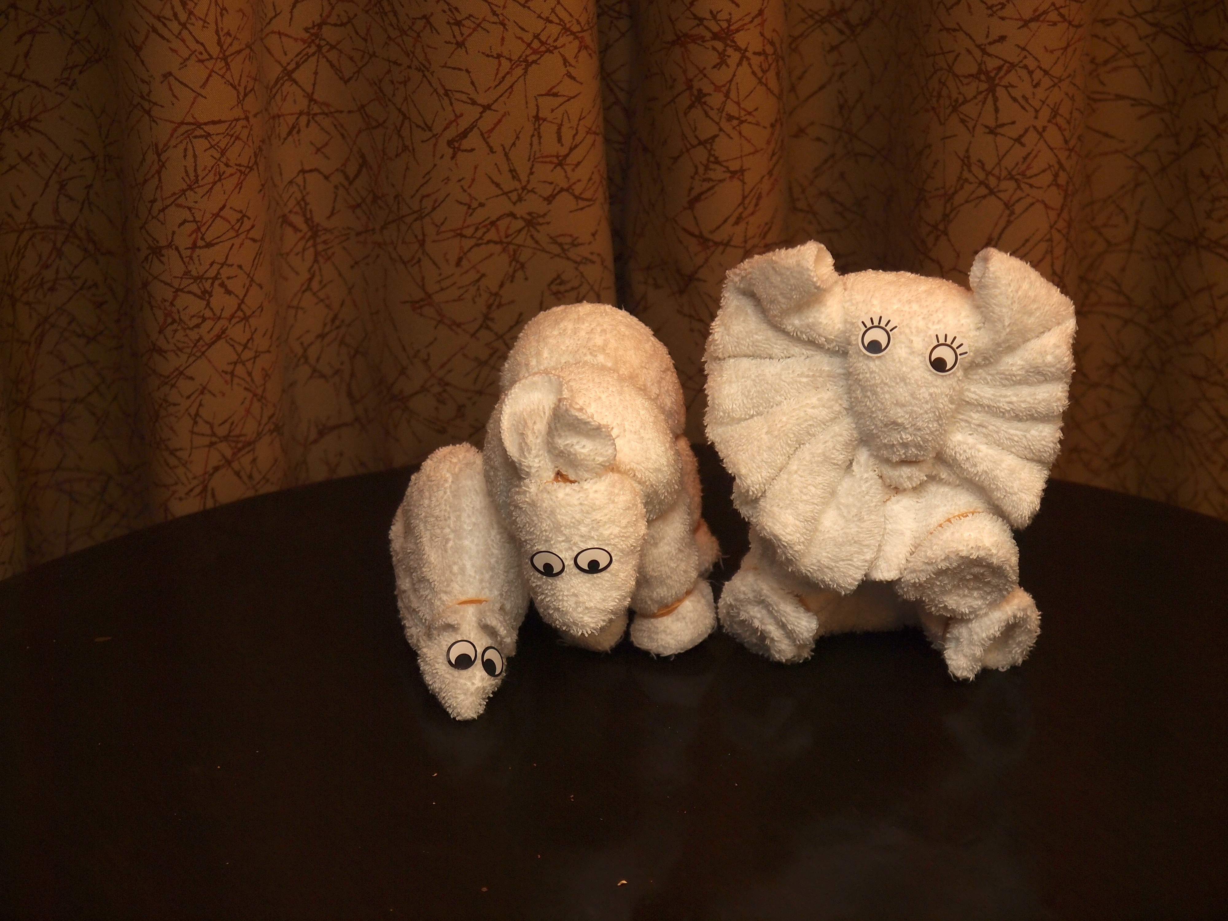 Picture #115: Towel animals Small: 1000x773, 118,454 bytes (116K), (html file) Large: 4000x3000, 3,880,014 bytes (3.7M), (html file) Copyright, Michael Meissner 2011, All rights reserved Olympus E-5 camera with Olympus 14-54mm f/2.8-3.5 lens f/3.4, ISO 200, Metz 48 flash, 1/80 sec, 45.0mm, auto mode, vivid color, matrix metering, IS1 (All Direction Shake IS) 35mm equivalent focal length 90.0mm Programs used: adjusttime, raw therapee Taken by Michael Meissner on December 15, 2011 20:45:25 Last modified on February 09, 2012 at 00:07 |