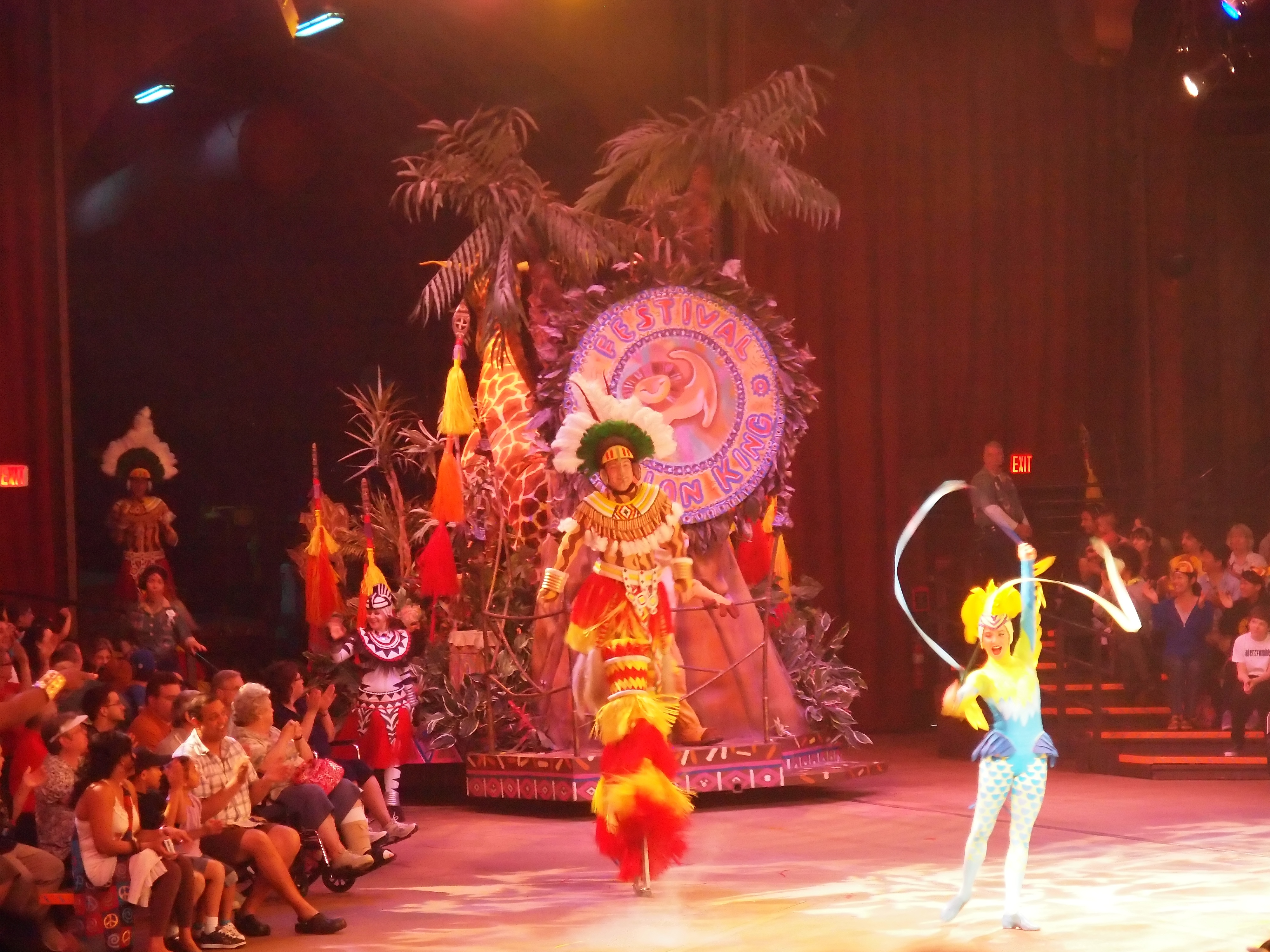 Picture #15: Festival of the Lion King show #6 Small: 1000x773, 137,237 bytes (135K), (html file) Large: 4000x3000, 3,507,975 bytes (3.3M), (html file) Copyright, Michael Meissner 2011, All rights reserved Olympus E-5 camera with Olympus 14-54mm f/2.8-3.5 lens f/3.5, ISO 2000, 1/100 sec, 53.0mm, auto mode, vivid color, center weight metering, IS1 (All Direction Shake IS) 35mm equivalent focal length 106.0mm Programs used: adjusttime, noiseninja, raw therapee Taken by Michael Meissner on December 15, 2011 10:54:18 Last modified on February 14, 2012 at 19:33 |