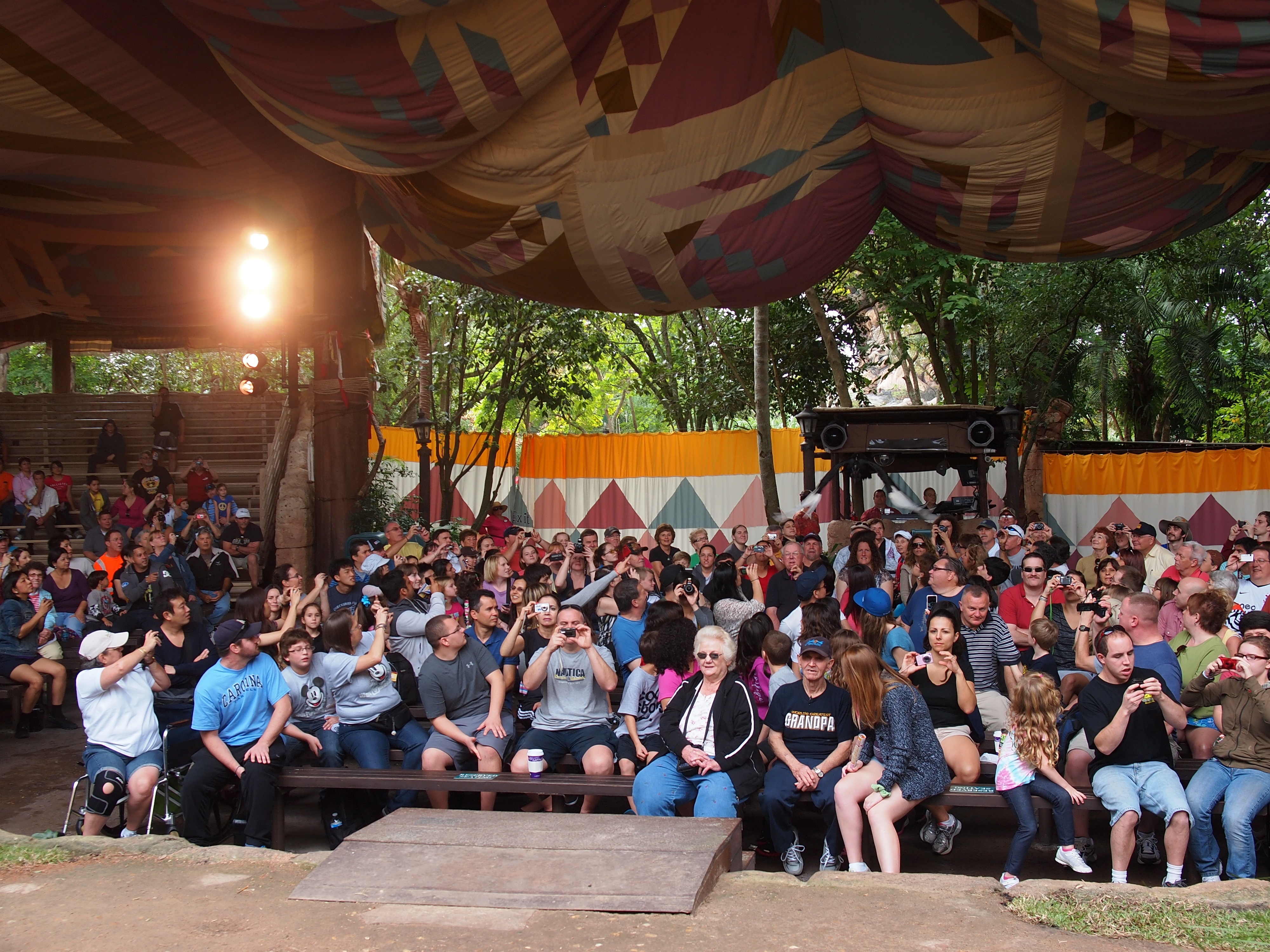 Picture #2: Festival of the Lion King show #2 Small: 1000x773, 137,534 bytes (135K), (html file) Large: 4000x3000, 3,567,065 bytes (3.4M), (html file) Copyright, Michael Meissner 2011, All rights reserved Olympus E-5 camera with Olympus 14-54mm f/2.8-3.5 lens f/3.4, ISO 2500, 1/50 sec, 50.0mm, auto mode, vivid color, center weight metering, IS1 (All Direction Shake IS) 35mm equivalent focal length 100.0mm Programs used: adjusttime, noiseninja, raw therapee Taken by Michael Meissner on December 15, 2011 10:36:50 Last modified on February 14, 2012 at 18:59 |