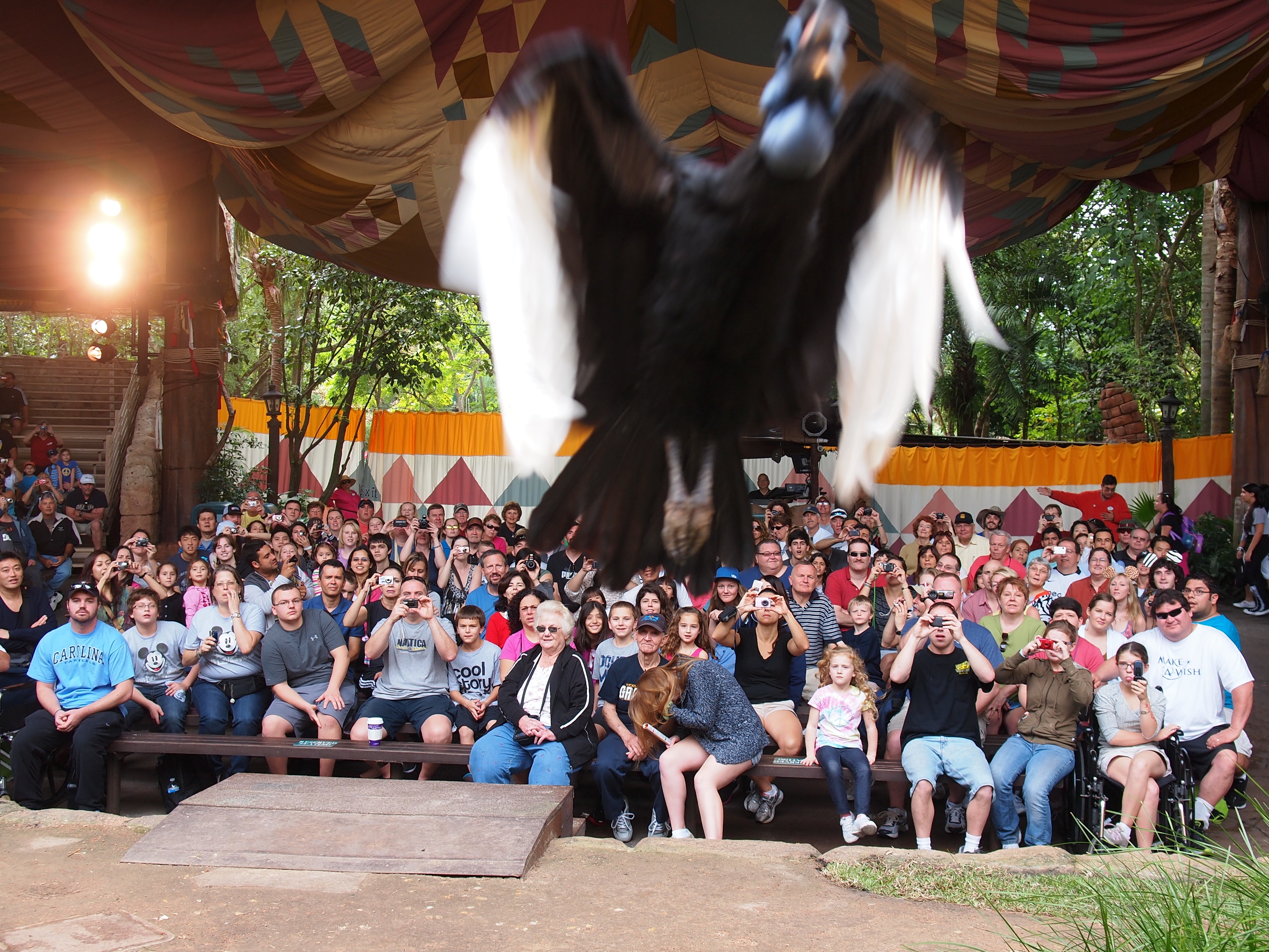 Picture #4: Flights of Wonder bird show #3 Small: 1000x773, 257,404 bytes (252K), (html file) Large: 4000x3000, 4,866,145 bytes (4.6M), (html file) Copyright, Michael Meissner 2011, All rights reserved Olympus E-5 camera with Olympus 14-54mm f/2.8-3.5 lens f/4.0, ISO 200, 1/125 sec, 49.0mm, auto mode, vivid color, matrix metering, continous focus, IS1 (All Direction Shake IS) 35mm equivalent focal length 98.0mm Programs used: adjusttime, raw therapee Taken by Michael Meissner on December 15, 2011 11:31:02 Last modified on February 14, 2012 at 19:41 |