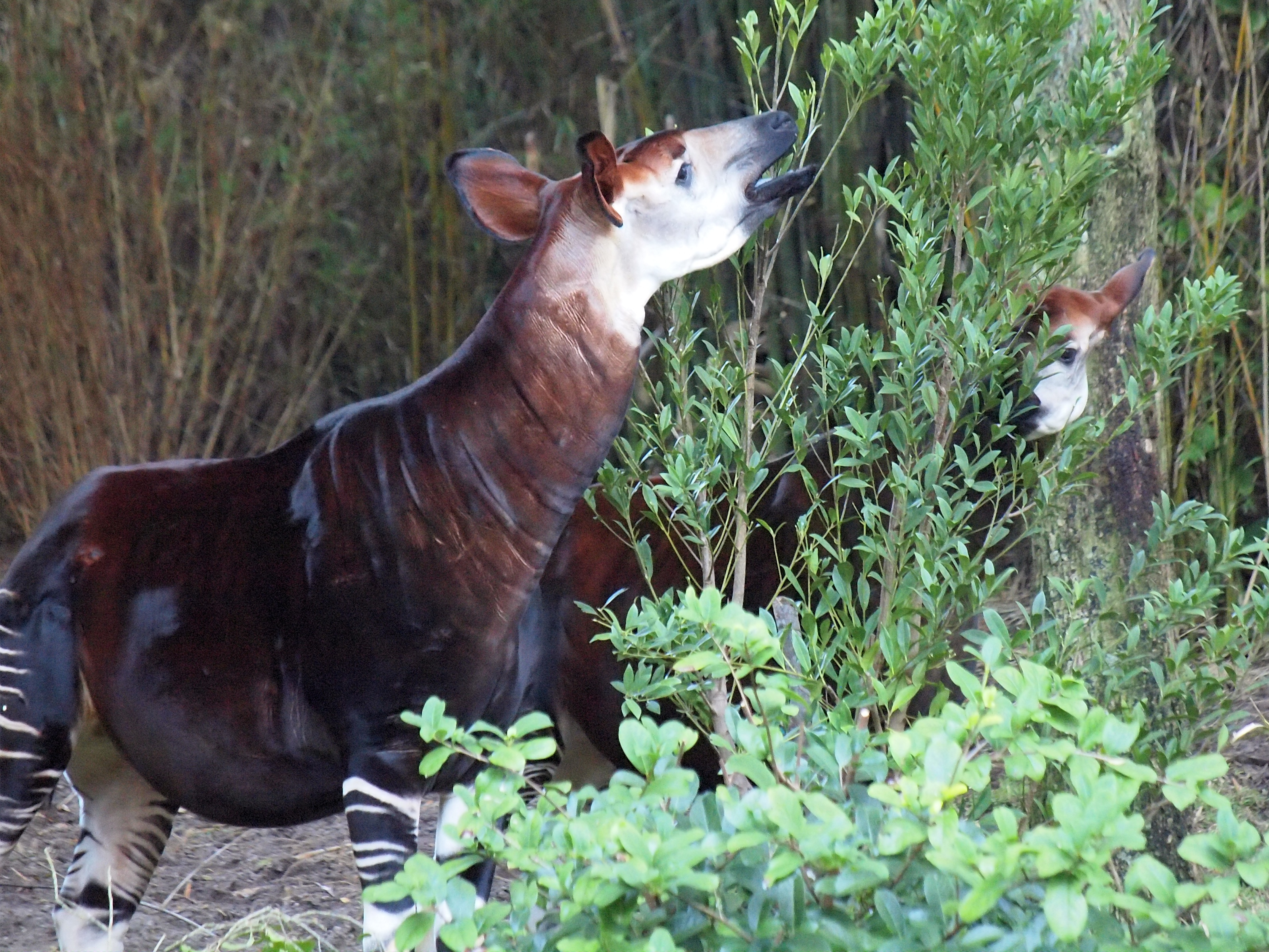 Picture #3: Okapi #3 Thumb: 450x338, 50,392 bytes (50K) Small: 900x698, 157,359 bytes (154K), (html file) Large: 3600x2700, 4,052,882 bytes (3.9M), (html file) Copyright, Michael Meissner 2011, All rights reserved Olympus E-3 camera with Olympus 50-200mm f/2.8-3.5 lens and Olympus EC-14 (1.4x) f/4.0, ISO 1250, 1/80 sec, 80.0mm, auto mode, vivid color, matrix metering, manual focus, IS1 (All Direction Shake IS), noise filter low 35mm equivalent focal length 160.0mm, EC-14 Programs used: adjusttime, crop, raw therapee Taken by Michael Meissner on December 21, 2011 08:50:32 Last modified on February 19, 2012 at 10:43 |