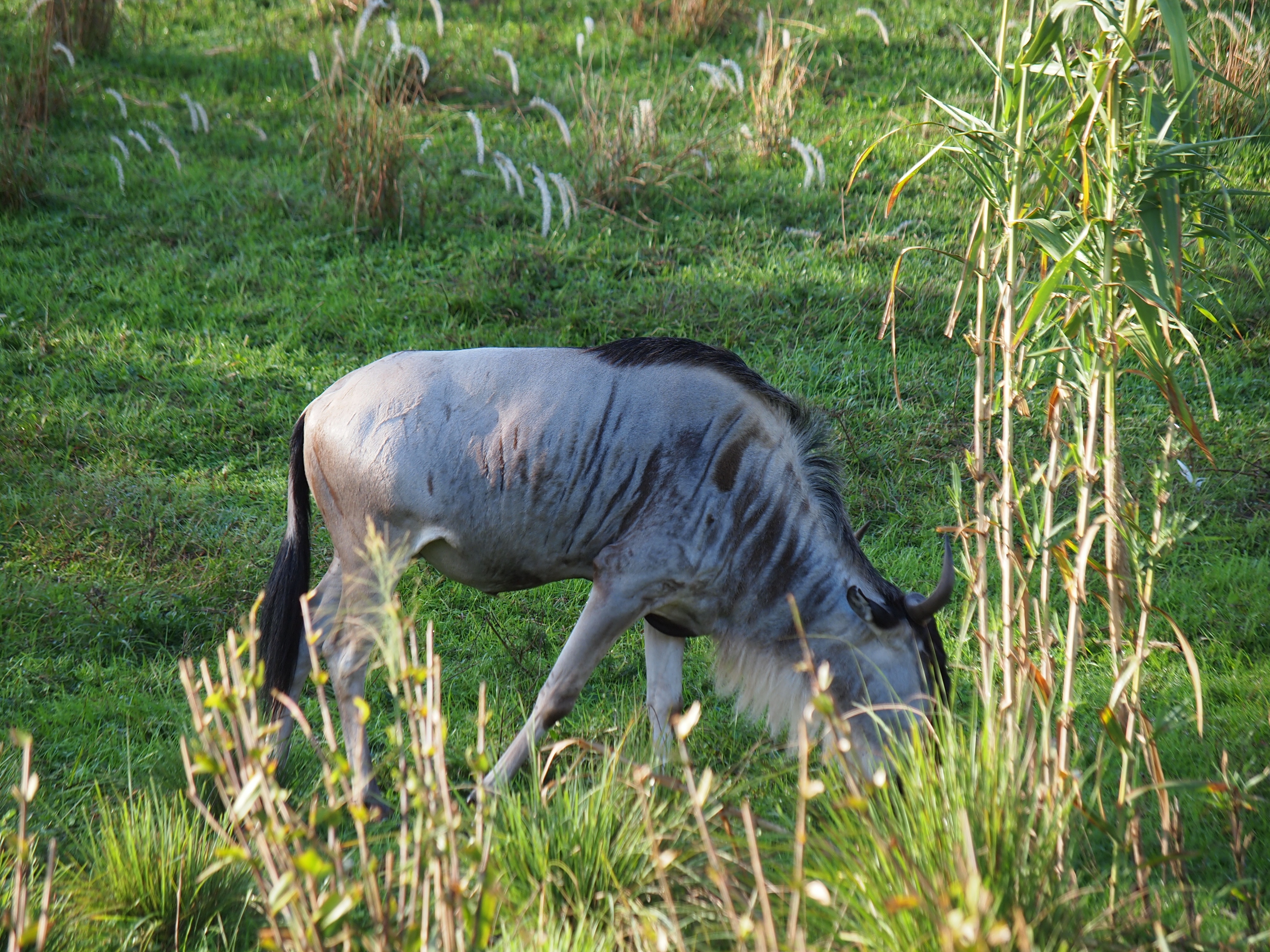 Picture #5: Wildebeast #4 Thumb: 450x338, 55,859 bytes (55K) Small: 900x698, 194,297 bytes (190K), (html file) Large: 3600x2700, 3,527,620 bytes (3.4M), (html file) Copyright, Michael Meissner 2011, All rights reserved Olympus E-3 camera with Olympus 50-200mm f/2.8-3.5 lens and Olympus EC-14 (1.4x) f/5.0, ISO 100, 1/200 sec, 95.0mm, auto mode, vivid color, matrix metering, manual focus, IS1 (All Direction Shake IS), noise filter low 35mm equivalent focal length 190.0mm, EC-14 Programs used: adjusttime, crop, raw therapee Taken by Michael Meissner on December 21, 2011 08:59:45 Last modified on February 19, 2012 at 12:10 |