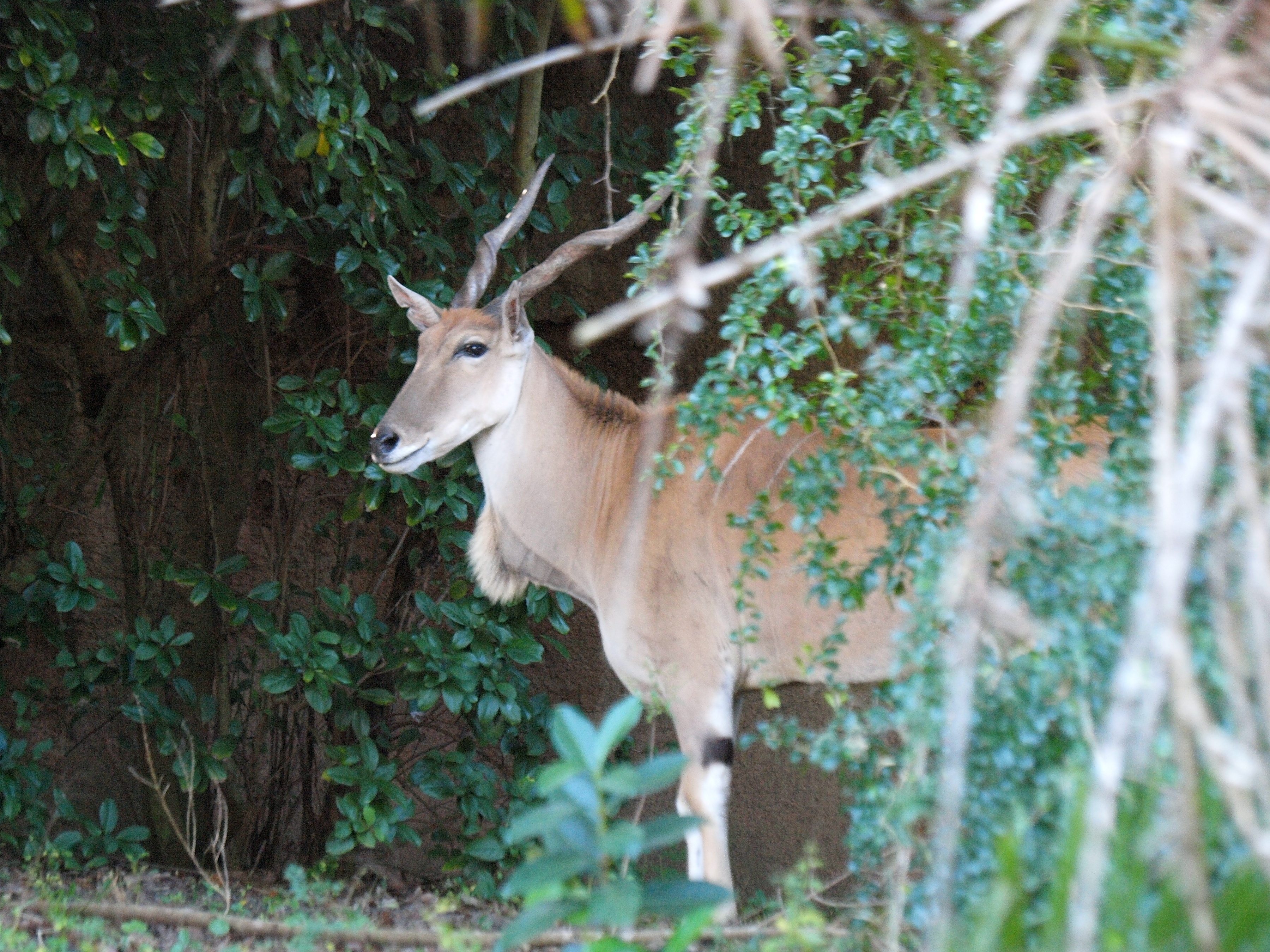 Picture #8: Eland #8 Thumb: 450x338, 51,096 bytes (50K) Small: 900x698, 166,425 bytes (163K), (html file) Large: 3600x2700, 4,291,663 bytes (4.1M), (html file) Copyright, Michael Meissner 2011, All rights reserved Olympus E-3 camera with Olympus 50-200mm f/2.8-3.5 lens and Olympus EC-14 (1.4x) f/4.0, ISO 1250, 1/200 sec, 107.0mm, auto mode, vivid color, matrix metering, manual focus, IS1 (All Direction Shake IS), noise filter low 35mm equivalent focal length 214.0mm, EC-14 Programs used: adjusttime, crop, raw therapee Taken by Michael Meissner on December 21, 2011 09:36:24 Last modified on February 19, 2012 at 12:23 |
