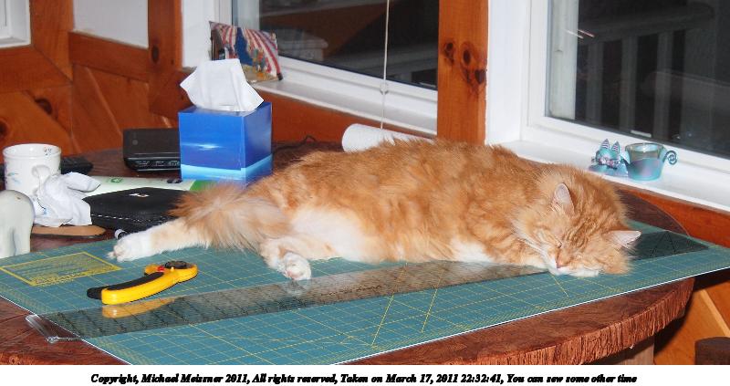 Picture #28: You can sew some other time #3 800x423, 74,757 bytes (74K), (html file) Copyright, Michael Meissner 2011, All rights reserved Olympus E-P2 camera with Olympus-m43 14-150mm f/4.0-5.6 lens f/5.1, ISO 200, FL-36 flash (+0.33 flash compensation), 1/60 sec, 34.0mm, auto mode, vivid color, matrix metering, auto + manual focus, IS1 (All Direction Shake IS) 35mm equivalent focal length 68.0mm Extra equipment used: Olympus FL-36 flash Programs used: gimp Taken by Michael Meissner on March 17, 2011 22:32:41 Last modified on March 18, 2011 at 01:18 |